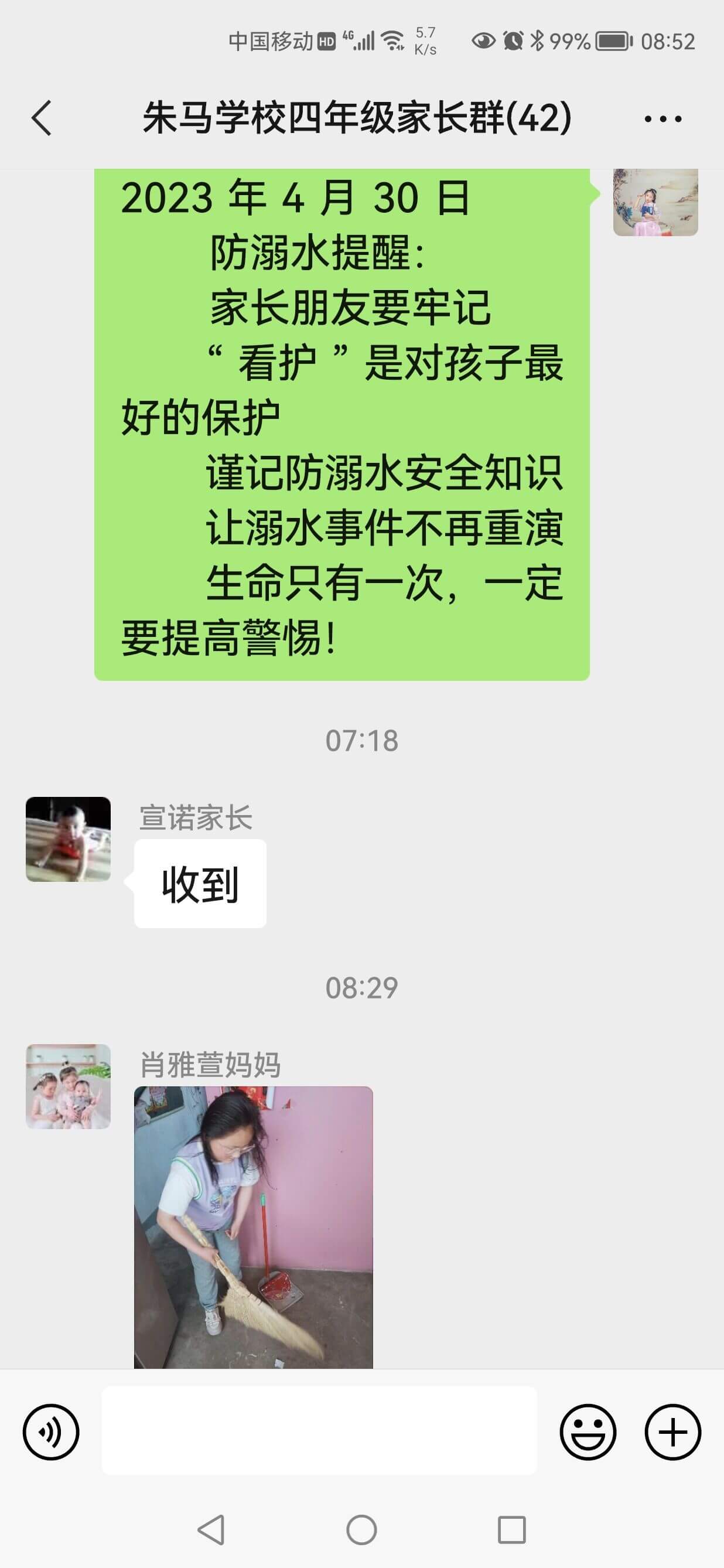 ~ 会上,分管安全副校长传达了“滁州市校园安全暨防溺水工作电视电话会议精神”,强调防溺水工作要常抓不懈,确保防溺水教育宣传到位,不漏一人,确保学生安全。同时还提到要做好校园食堂食品安全管理工作,确保食品安全卫生,全力守护师生饮食安全。校安全办主任对校园安全工作进行部署,重点强调防溺水工作。要求各班在放假前召开一次“五一假期安全教育”主题班会、组织学生观看“防溺水安全警示片”,提高学生的防溺水安全意识,宣传普及防溺水知识,让防溺水安全教育入脑更入心。假期里,各班要利用微信家长群,每日发送“防溺水安全提醒”,提醒家长加强对孩子的防溺水教育和安全管理,履行监护人责任意识。