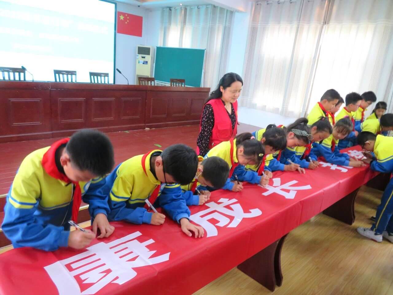 ~ 定远县“扫黄打非”办公室的志愿者给学校发放了“护苗2023·绿书签行动”宣传海报,给孩子们播放了公益视频,分发了“绿书签”,让孩子们感受到了爱让生命有了方向,阅读让成长更有力量。最后,同学们在写有“护助健康成长,拒绝有害内容”的横幅上郑重签名。