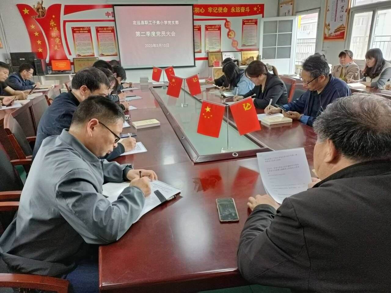 ~ 为深入学习贯彻党的二十大精神,进一步加强党建引领育人,打造四红特色品牌,推动学校全体党员深入学习习近平新时代中国特色社会主义思想,5月10日下午,定远县职工子弟小学党支部在四楼党员活动室召开了2023年第二季度全体党员大会,会议由党支部书记、校长杨孝前主持,全体党员参加了大会。