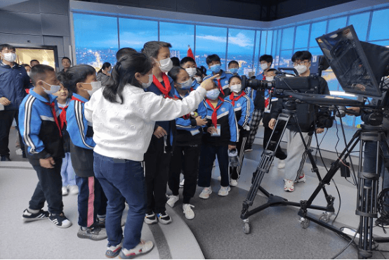 同学们满怀激动、好奇的心情走进县融媒体中心大楼,实地参观了定远县融媒体中心的指挥调度中心、演播室、后期制作室、电视播放监控室、直播室等。同学们通过参观、体验、互动等方式,了解定远电视台的发展,感受定远广电人的风貌,了解媒体人的工作流程。在演播室,同学们热情高涨,争先恐后地在演播台上模拟主持场景,争当小主持人,现场气氛热烈。
