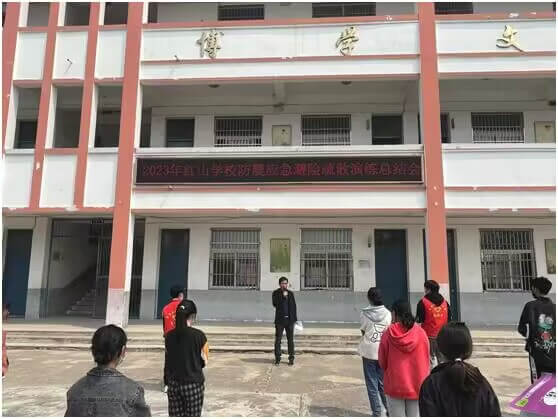 ~ 听到警报声,全校师生迅速投入到了演练活动,教室内任课教师先指导学生就地避险,接着安全、有序地撤离到安全地带。随后各班班主任马上清点人数。整个演练过程既紧张激烈,又有条不紊,全体学生从教室撤离到操场只用了不到1分钟的时间。最后,该校党支部书记、校长王飞对本次演练活动进行总结,指出疏散演练过程中存在的问题。