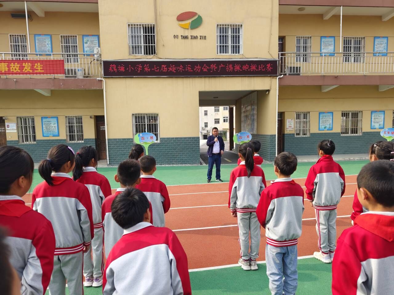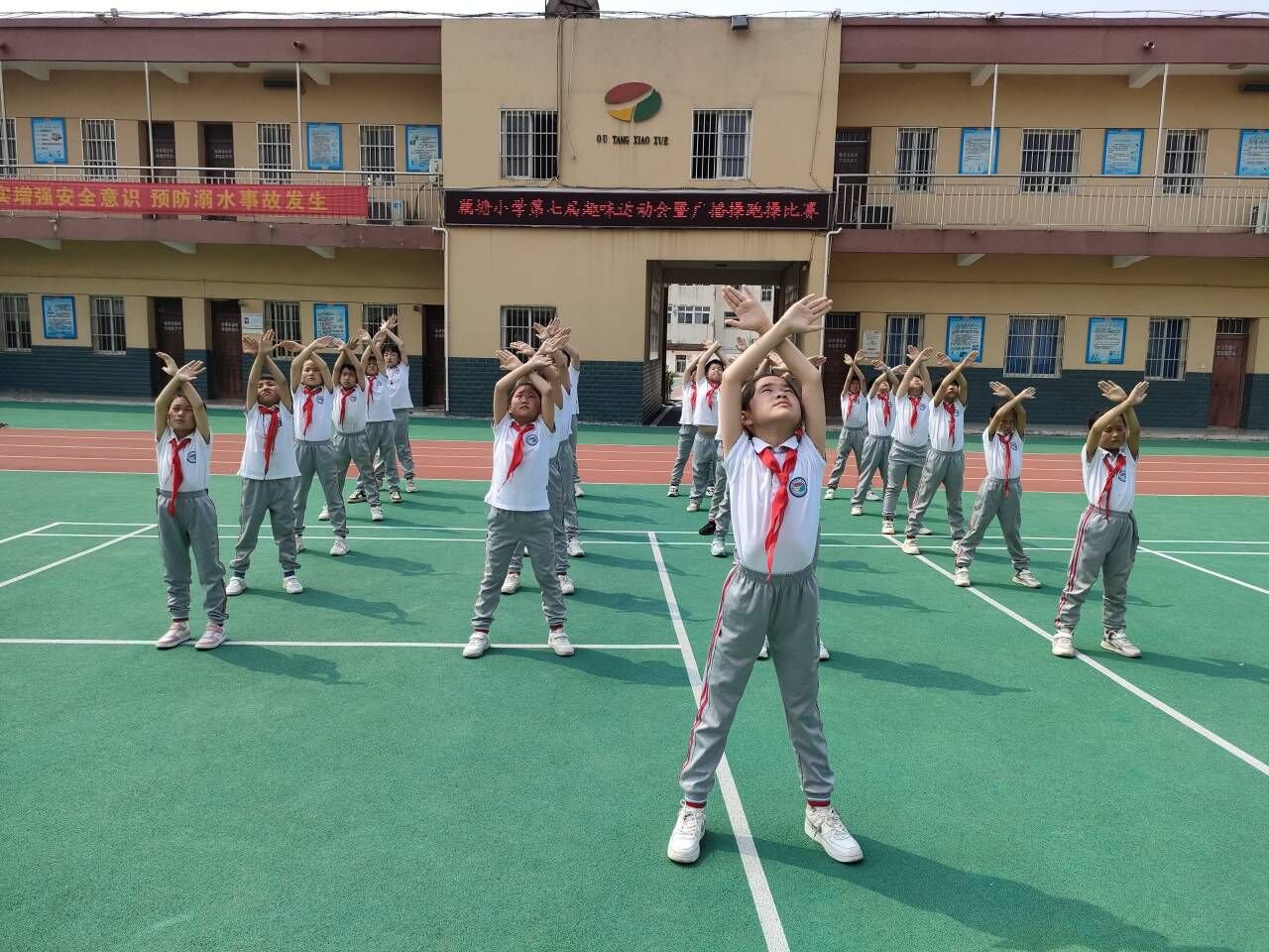 ~ 为丰富校园文化生活,培养学生集体主义观念以及吃苦耐劳的顽强意志,展现学生积极进取、奋发向上的精神风貌,5月12日,定远县藕塘小学全体师生满怀喜悦,汇聚操场,举行了第七届趣味运动会暨广播操跑操比赛。