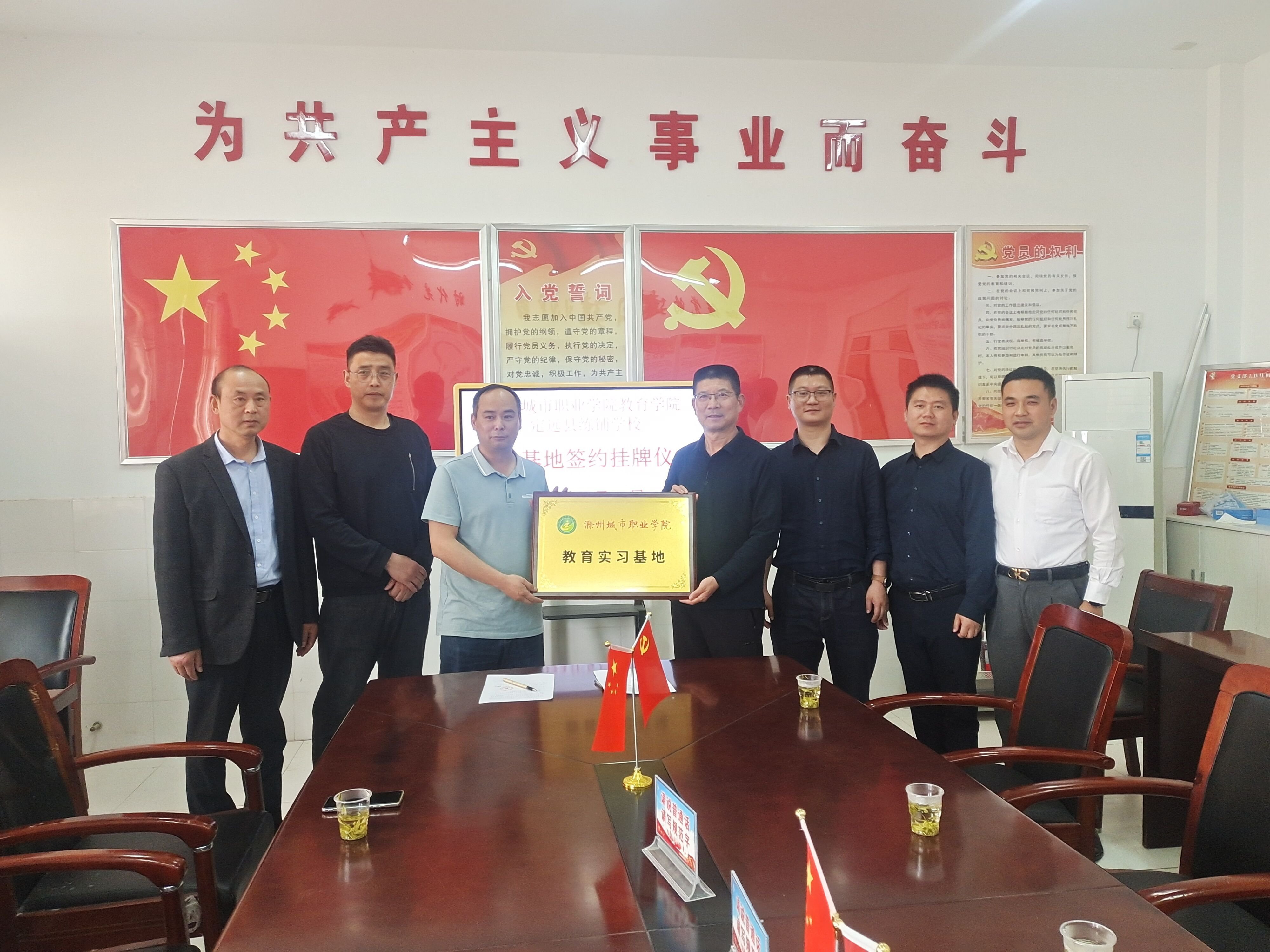 ~ 为加强“产学研”合作,发挥社会力量,共同培养富有创新意识,有较强实践能力的应用型人才,2023年5月11日,滁州城市职业学院教育学院党总支书记钱庆兵一行到定远县练铺学校举行实习基地签约挂牌仪式。