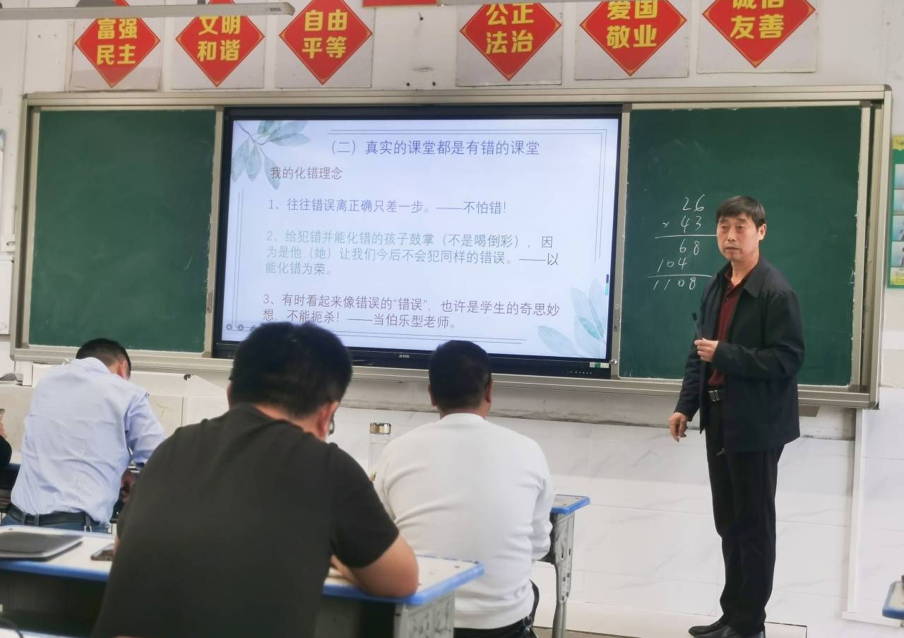 ~ 分享会上,施老师从跟岗培训简介、总结与反思、探索与实践、说在最后四个方面与大家进行汇报。尤其是谈到“真实的课堂都是有错的课堂”时,施老师更是结合具体事例,指出化错教育的精髓是“化错化人”,也就是在化“错”为“对”的过程中,对孩子们进行思想教育,从而达到育人的目的。