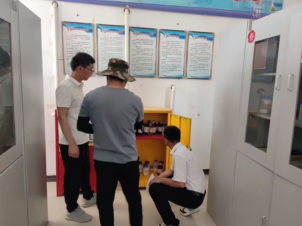 ~ 排查前召开校园安全部署会,刘继忠校长带领学习《关于进一步做好学校消防安全工作的紧急通知》文件精神,并结合学校实际对涉及安全隐患的重点工作和责任部门做了具体安排。安全隐患排查小组分为两组。第一小组在陆华祥副校长的带领下,重点对消防器材是否完好、监控设备是否正常到位、配电设施、实验室危化品的保管及使用情况等进行排查。第二小组成员在赵玉生副校长的带领下,对食堂、宿舍、图书室、门卫室的食品留样、进入登记、有无私接电源、乱设插座、乱充电等现象进行排查。