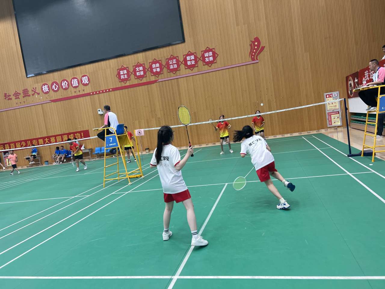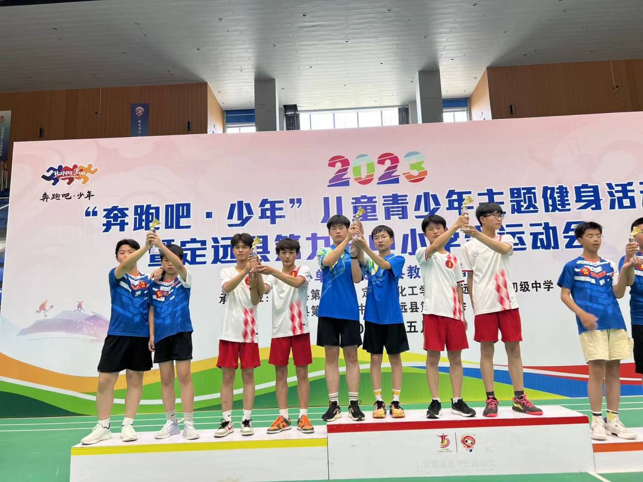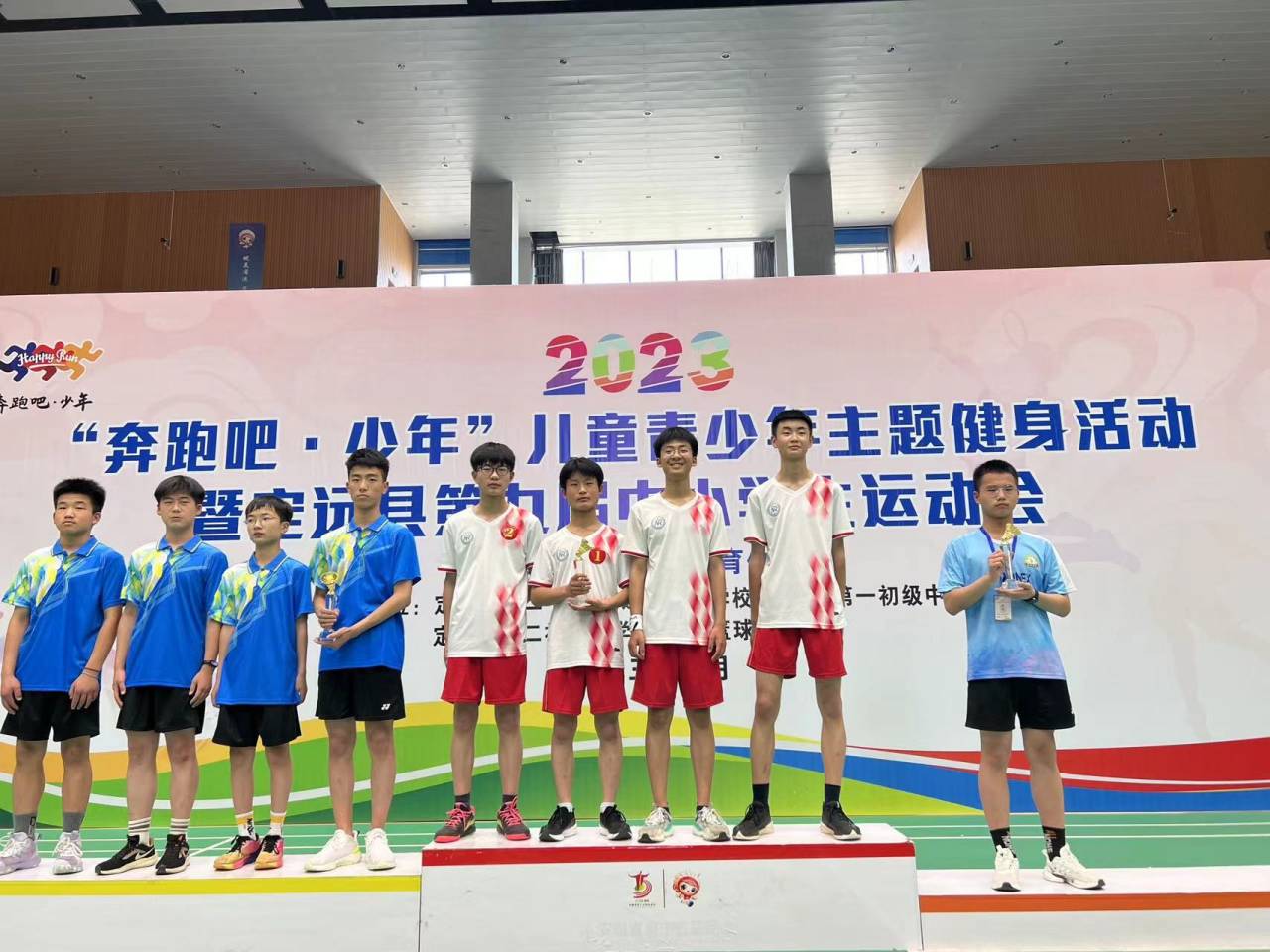 ~ 5月19日至20日,定远县“奔跑吧 少年”第九届中小学生运动会羽毛球比赛在定远体育馆举行。能仁学校派出11名优秀运动员组队参赛。