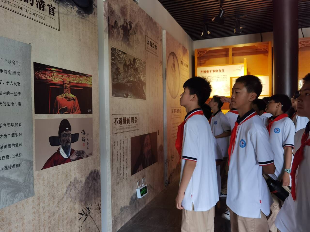 ~ 早上7:00,同学们已整装待毕,准备出发,经过近50分钟的徒步跋涉,到达目的地——定远县包公法治文化园。定远包公文化园是一处以人文历史、古建筑群、自然植被和水岸亭榭等众景观组成的景区,其中以人文历史景观最为主。定远县衙是包公文化园重要的组成部分。同学们在老师的带领下,重点参观了定远县衙。在县衙内,封建衙署各个功能建筑齐全。在古县衙的西侧古建筑群内展示了以包拯的廉洁从政、刚正为人、智慧办案为主题的包公文化馆,以及在古县衙东侧的古建筑群内展示了以廉政反腐为主题的包公廉政文化馆。