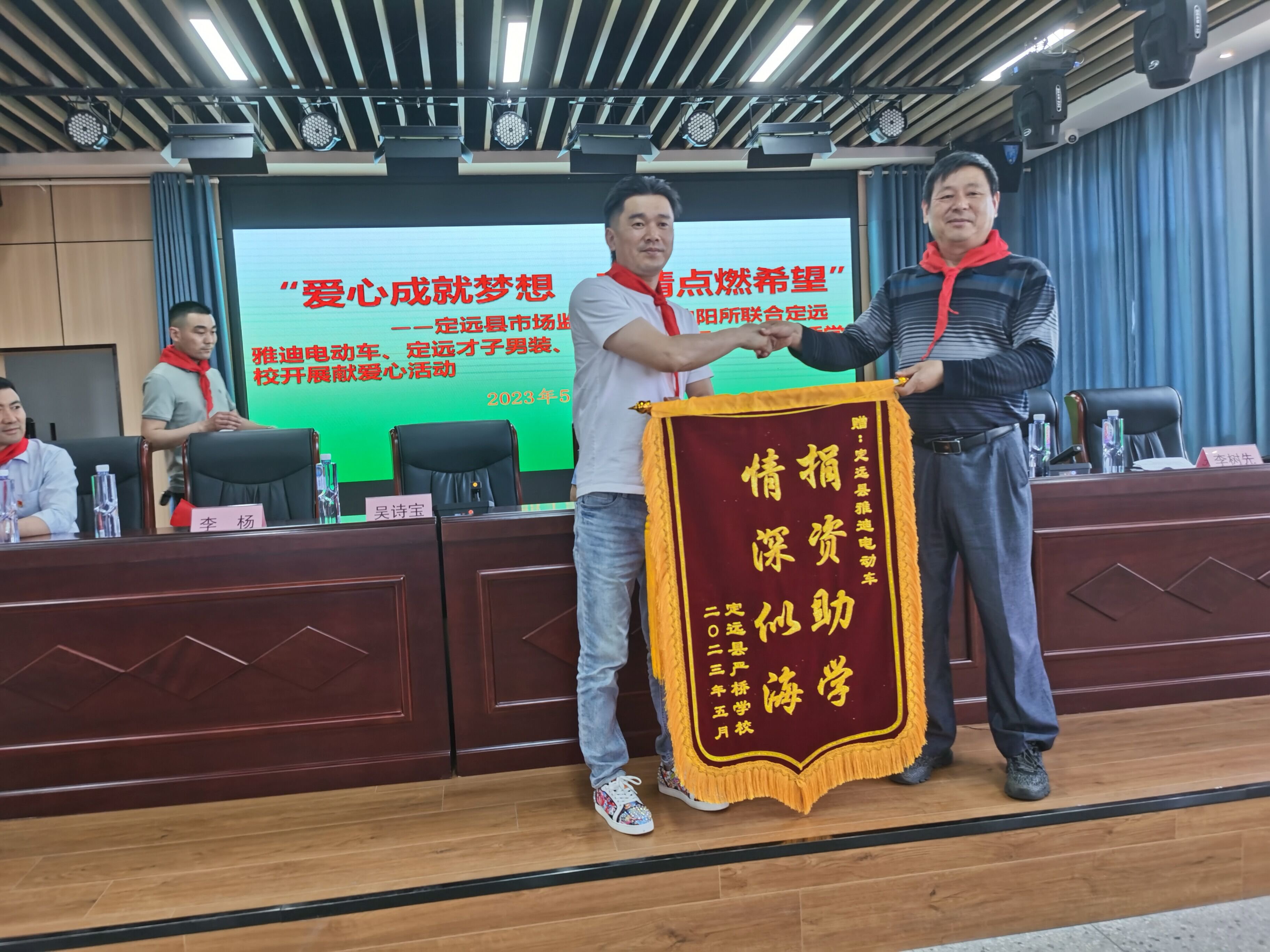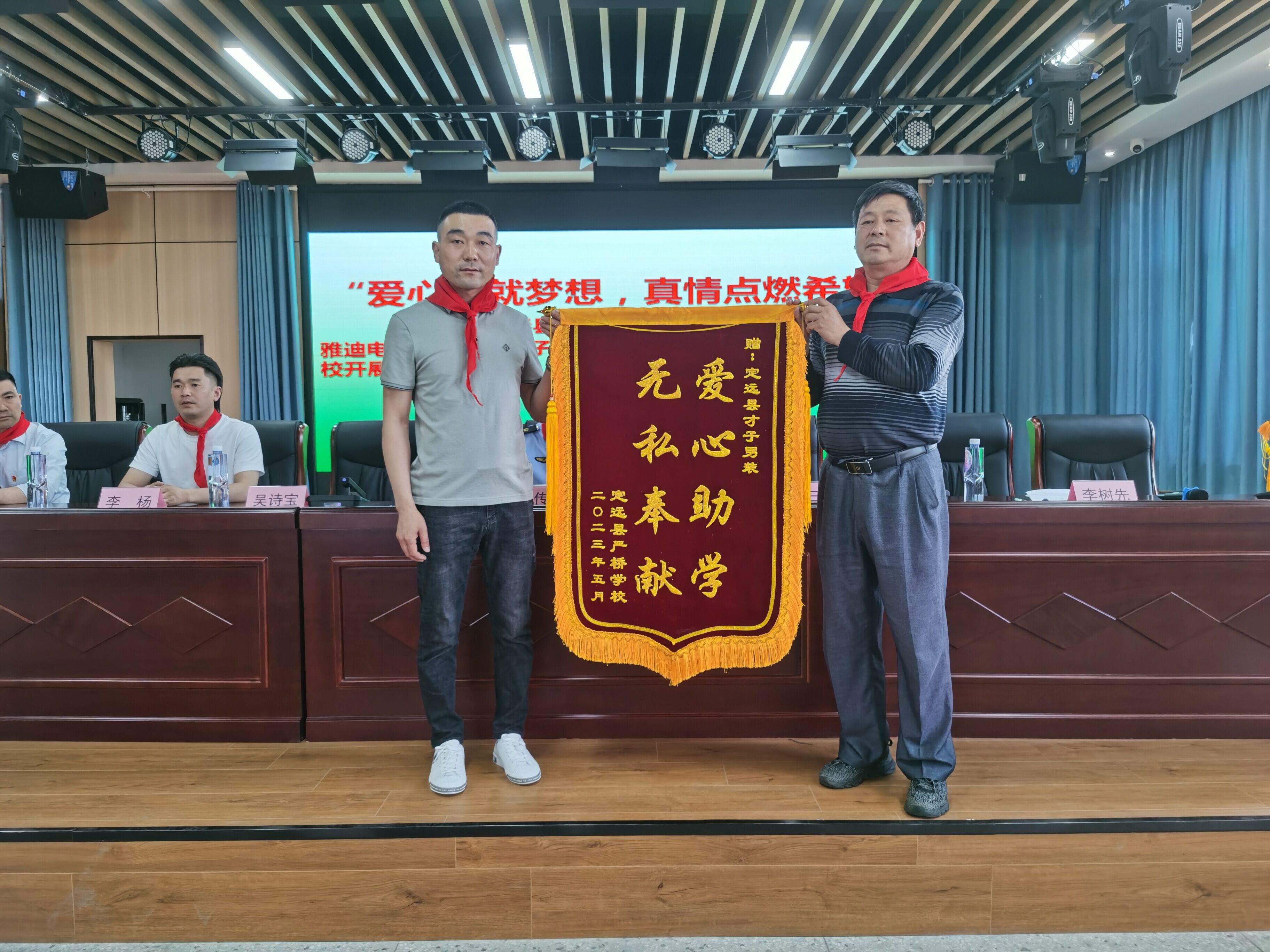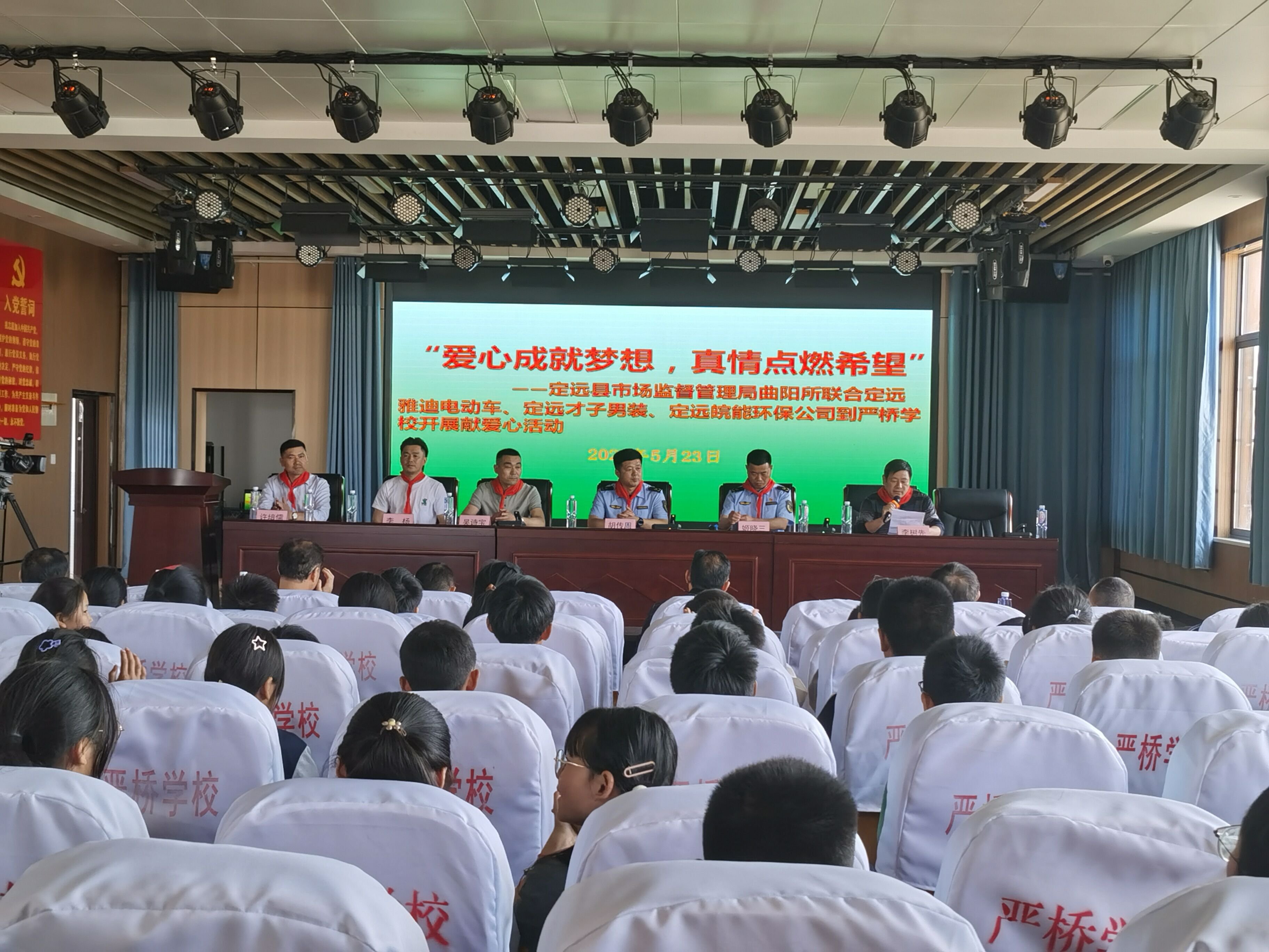 ~ 济困助学是一项功在当代、利在千秋的事业,是中华民族传统美德在新形势下的发扬光大。5月23日下午,定远县市场监督管理局曲阳所联合定远县雅迪电动车、才子男装到严桥学校开展献爱心活动。严桥学校享资助的40余名学生和资助单位负责人共同参加了活动,活动由严桥学校党支部书记、校长李树先主持。