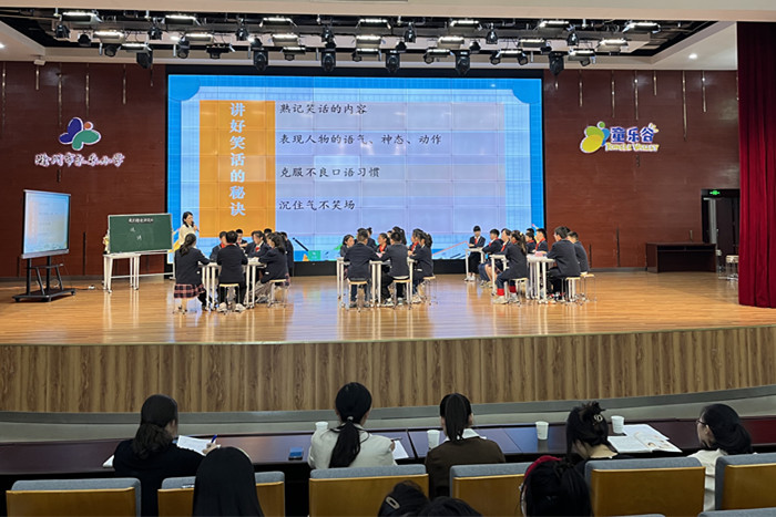 ~ 第一节展示课,由永乐小学杨名媛老师为大家带来小古文教学——《杨氏之子》。杨老师教学思路清晰,她紧扣教学目标,带领学生深度学文,以读促思,读中悟情,有效进行古文学习训练,拓宽了学生的学习思路,为我们呈现出一节精彩纷呈的语文课。第二节展示课,由永乐小学许昌群老师执教口语交际课例《我们都来讲笑话》,正确解读教材,精准定位目标是上好口语交接课的前提。整堂课真的是层层递进、层层深入,这种进阶化、层层递进、层层推进的教学活动,让整堂课在轻松、愉快中就达成了教学目标。