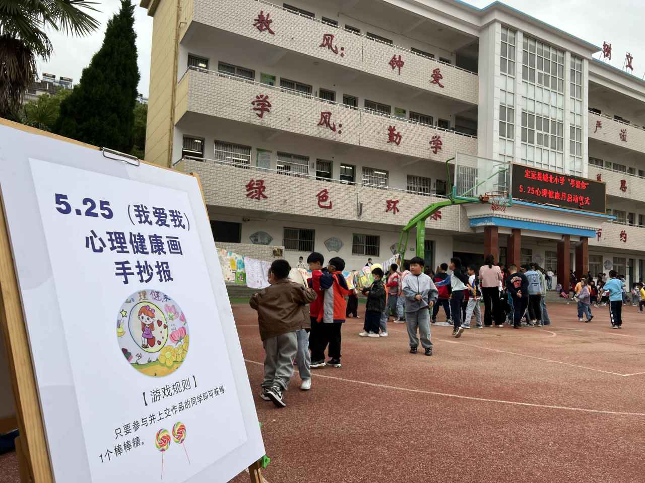 活动前期,学校准备了丰富的奖品,包括水彩笔、棒棒糖、笔记本等。围绕活动组织、任务分工、活动环节进行多方讨论,推演预案、敲定细节、明确分工,各中队深入宣传。师生携手,整装待发,确保心理游园会的顺利进行。脑力挑战区设置游戏“Stroop大闯关”、“极速60秒”、“挑木棍儿”等活动,考验学生知识面、注意力、观察力和创造力的活动,让学生在脑力激荡的过程中收获成就感,激发内心深层次的能量。活动手绘区设置“手绘空白扇子”、“小确幸树洞”等活动:手绘空白扇子游戏让学生在在道具上进行自由创作,画随心动,探索自我、放松精神、舒缓压力;小确幸树洞游戏可以诉说烦恼,获取支持,感受来自他人的温暖与关怀!也可以把快乐的事情、美好的愿望等写一张便利贴贴在展板上与他人分享。团队合作区设置“三人四足”、“不倒森林”、“泡泡糖游戏”等活动,让学生领会了团队配合的快乐与成就感。让身体动起来,在协作中拉近心与心的距离,在活动中收获心灵的舒展与快乐;绘画展示区活动选取了部分绘画作品进行展出:包括“5.25心理健康画”和“5.25心理手抄报”等,鼓励大家在学习他人作品的同时挖掘自身潜能、积极思考;趣味游戏区设置“珠越重洋”、“傻瓜拳”等活动,希望队员们用阳光的心态面对生活,心灵永远向阳,做阳光少年。快乐的体验、精美的礼物、灿烂的笑容…..队员们以心相会,在游戏中体验,在体验中觉察,在觉察中学会关爱自我。爱自己才能更好地爱他人!