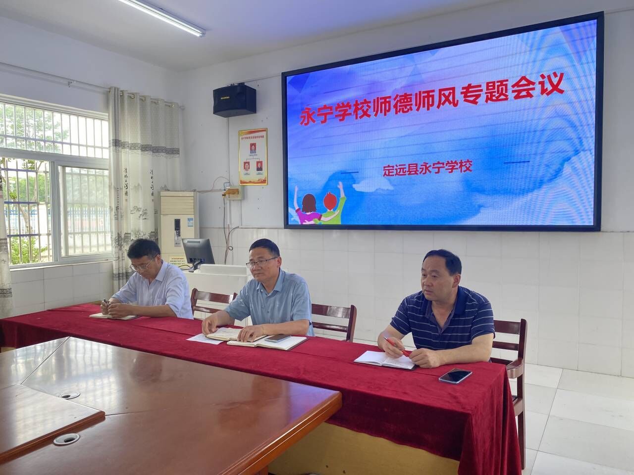 ~ 为了加强学校师德师风建设,提高立德树人水平,5月29日,定远县永宁学校召开师德师风建设专题会议。校党支部书记、校长李宇宝主持会议,全体教师参加会议。