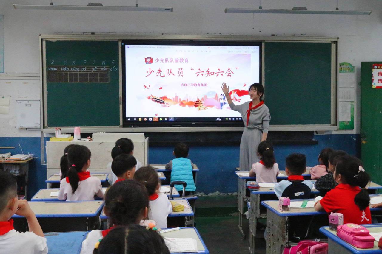 ~ 为了教育学生继承和发扬中国少年先锋队的光荣传统,培养学生健康向上、积极进取的精神,增强学校少先队组织的力量,促进学校红领巾事业的蓬勃发展,定远县永康小学教育集团少先大队5月30日组织一年级各中队开展以“六知六会”为主题的队前教育。