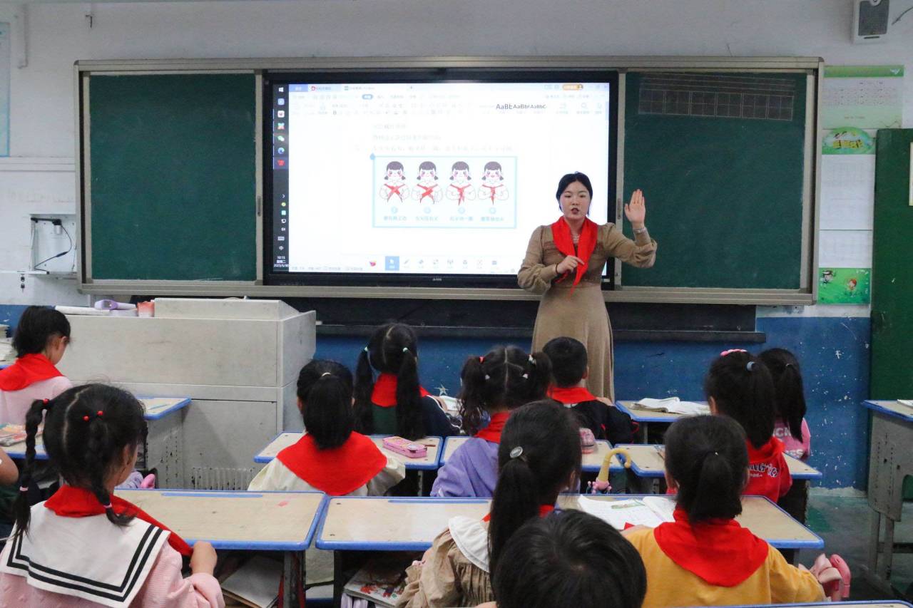 ~ 各班辅导员老师以“六知六会”为重点,通过课件展示、讲故事、现场示范等学生喜欢的方式,向学生讲解少先队的基本知识,让学生知道少先队的队名、创立者和领导者、队旗的含义、队徽的含义、少先队员的标志、少先队的作风等,使学生明白如何戴红领巾、敬队礼、呼号、宣誓,以及如何写入队申请等,培养他们对少先队的情感。通过班队会课,预备小队员们学习了如何系红领巾、敬队礼。规范的培训,让一年级同学们格外激动,认真聆听、用心模仿,兴趣高涨,一双双亮闪闪的眼睛渴望着成为一名合格的少先队队员。