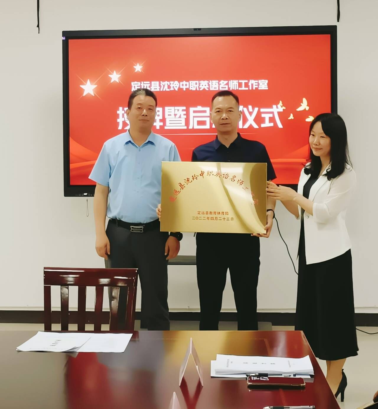 ~ 5月30日下午,定远县沈玲中职英语名师工作室授牌暨启动仪式在定远化工学校综合楼三楼会议室举行。定远县委教体工委书记、教体局局长张传志,县委教体工委委员、教体局副局长赵培森,县教体局教研室主任武红,定远化工学校领导班子、全体行政人员和工作室成员参加了仪式。
