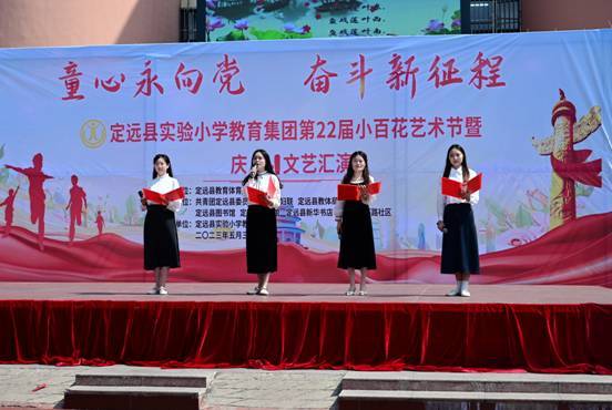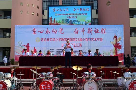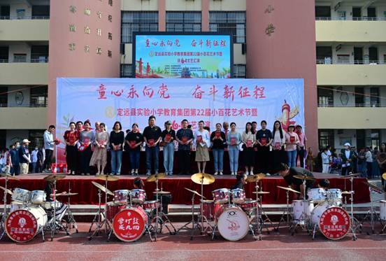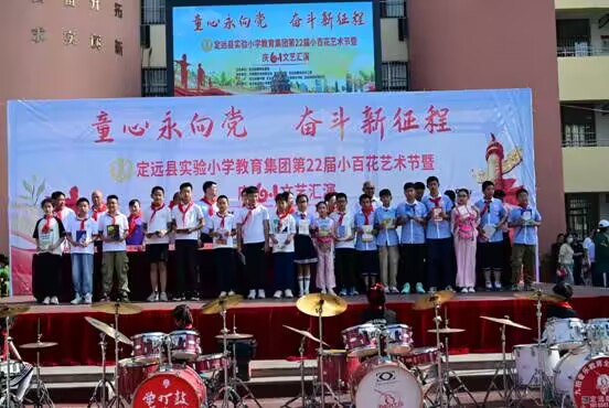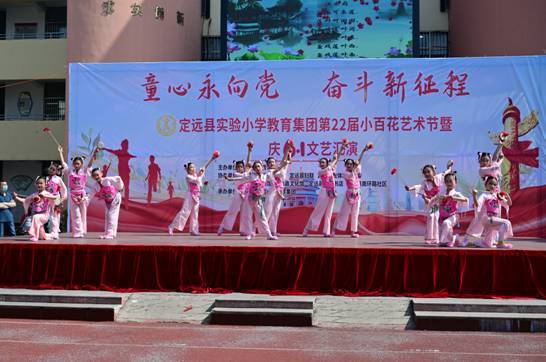~ 5月31日上午,作为实验小学教育集团第二十二届校园“小百花”艺术节“重头戏”之一的——“童心永向党奋斗新征程”庆“六一”文艺汇演暨表彰活动在曲阳路校区举行。定远县妇联主席江琳,共青团定远县委副书记张杨,县教体局关工委主任唐仁凤,县委教体工委委员、工会主席姜杨,县图书馆、文化馆、新华书店、定城镇南环路社区负责人等与实验小学教育集团党总支书记、校长陈恩源,副校长张宏旗、武文松、鲁宗环共同出席庆祝活动并在主席台就坐,活动由武文松主持。