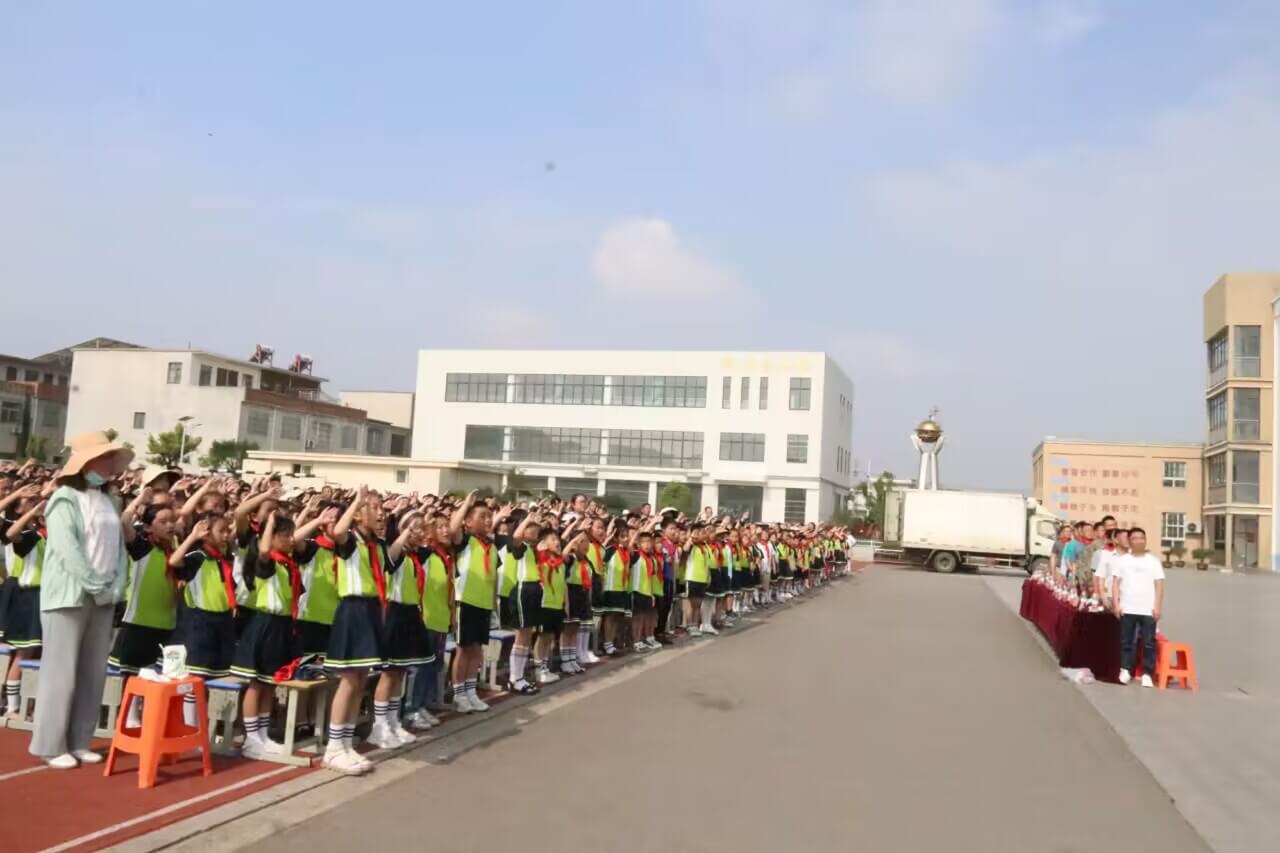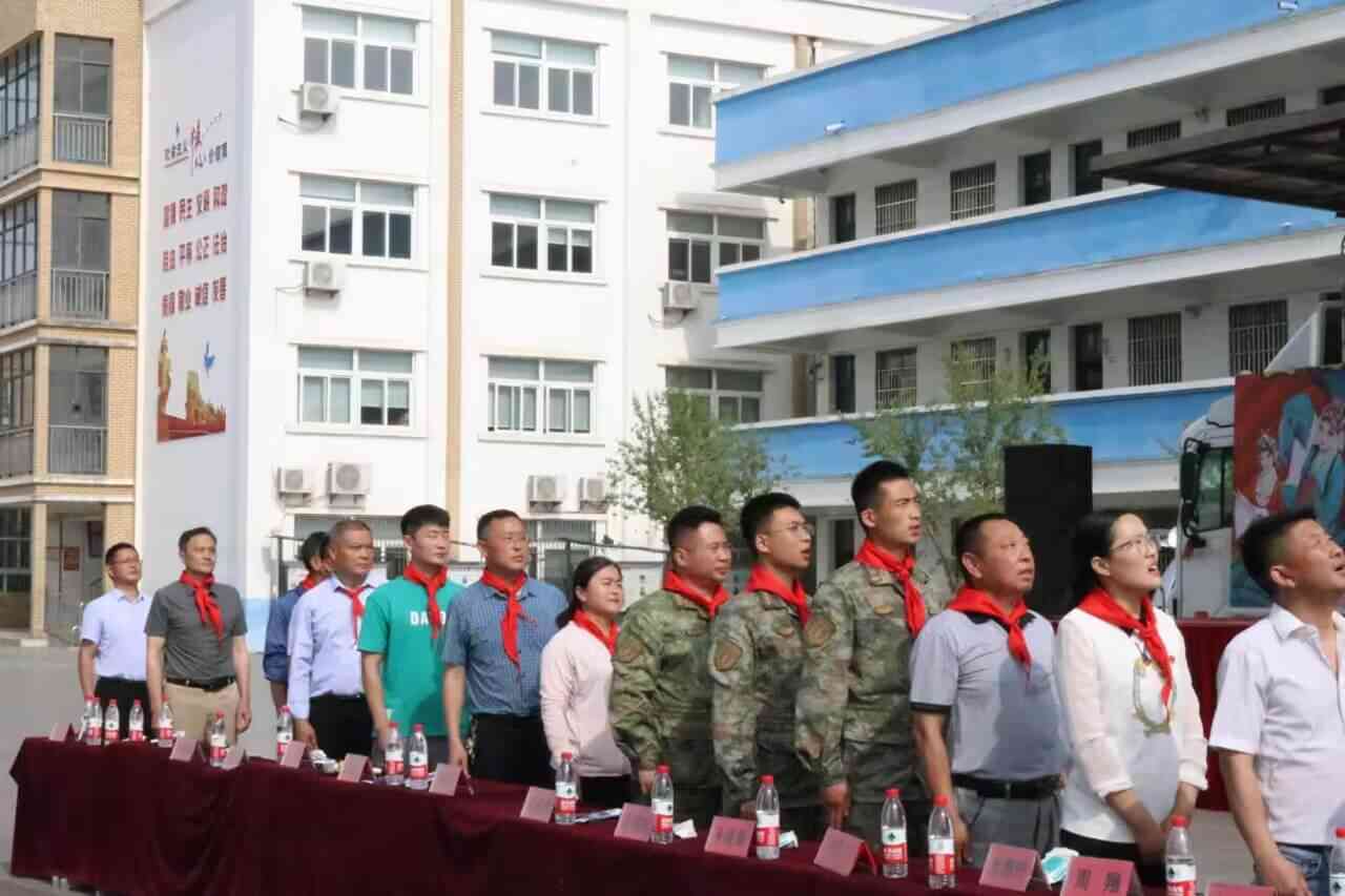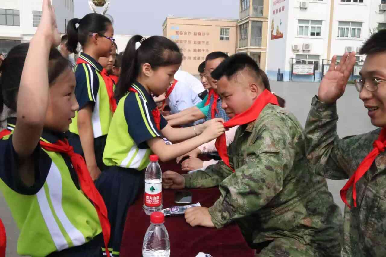 ~ 活动开始,少先队员代表为出席活动的驻地部队领导、永康镇政府领导、永康镇政协委员、校级领导们佩戴了红领巾,在雄壮嘹亮的国歌中,鲜艳的五星红旗冉冉升起,在灿烂阳光的辉映下高高飘扬。永康小学教育集团全体师生庄严肃穆、高唱国歌。文艺演出在永康小学教育集团党支部书记、校长黄海山和永康镇党委委员单葵花的致辞中拉开了帷幕。