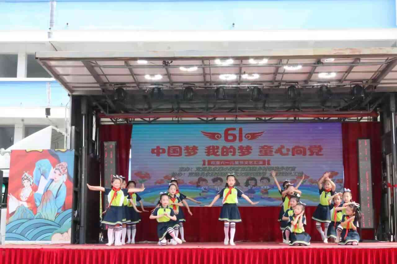 ~ 活动现场,学生们着装整齐,神采飞扬,以精彩的文艺汇演方式,表达了对党和祖国的热爱。五年级的开场舞《小城夏天》展示了青春的活力,幼儿园的小朋友们怀揣着对太空的憧憬为我们演绎了《飞翔蓝天梦》,定远县黄梅戏剧团的演员们也为我们带来了精彩的戏曲《三家店》《谁料皇榜中状元》,节目精彩纷呈,高潮迭起,兼具欣赏性、趣味性、艺术性,充分展现了素质教育的新成果、新形象,也充分挖掘出孩子们的艺术天分,展现出孩子们积极向上的精神风貌。台下的同学们看得目不转睛,掌声、欢笑声把现场变成欢乐的海洋。
