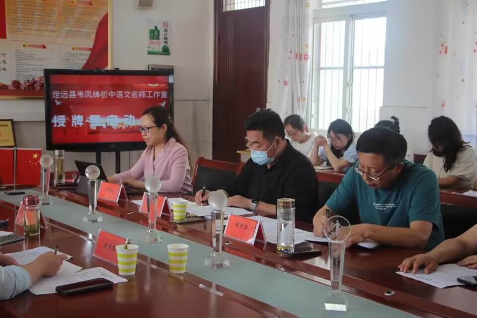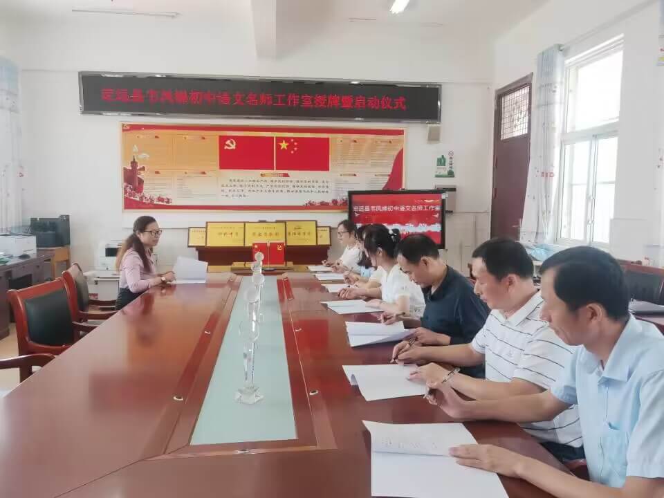 ~ 会上,武红主任首先对定远县韦凤娣初中语文名师工作室的成立表示热烈的祝贺,并对该名师工作室的发展规划给予了肯定和专业指导,她同时提出三点希望:一是希望工作室成员以工作室为荣,不断学习,认真领悟,积极进步,努力完成各项任务,力争在自我成长中探索适合学校校情、教师成长、学生健康成长的新途径;二是希望韦凤娣老师带领团队成员按照实施方案的目标任务做好各项工作,以专业引领、学习互助、交流研讨、共同发展为宗旨,以促进教师能力提升为目标,以推动教师专业发展为核心,以教育科研为先导,以课堂教学为主阵地,以学习交流为载体,突出科学性、实践性和严谨性,通过带一个团队、成一个项目、出一批成果,做好展示交流,完成阶段性的目标任务;三是希望炉桥中学积极创造条件,为工作室提供有力保障,确保日常作的顺利开展。