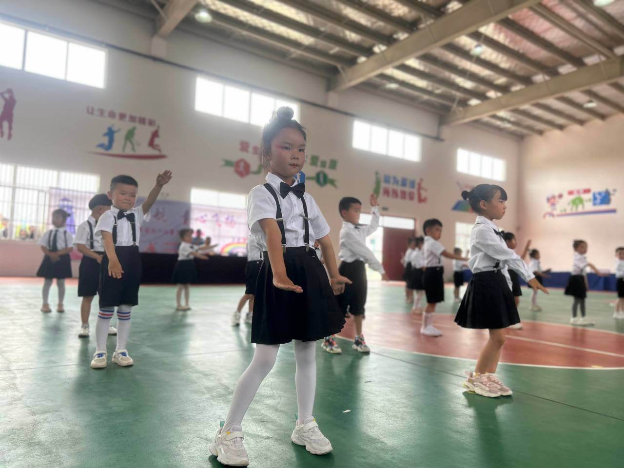 ~ 汇演在大班组精彩的《排球秀》中,开启了孩子们欢乐的表演时光。小演员们身着盛装,他们用自己的方式倾情投入,为大家带来了《苏醒的向日葵》、《哈尼宝贝》、《你是太阳我是星星》、《快乐宝贝》、《繁花》等精彩节目,他们在舞台上释放着童年的快乐,活泼可爱的样子被展现得淋漓尽致,将演出推向一个又一个高潮,观众也为孩子们的精彩表演送上最热烈的掌声。同时,幼儿园的老师们也为孩子们献上了精彩的健身操表演,优雅动感的节奏,整齐划一的表演,既表达了对孩子们节日的祝福,也充分展现了她们扎实的业务水平和团结一致、齐心协力的团队精神。