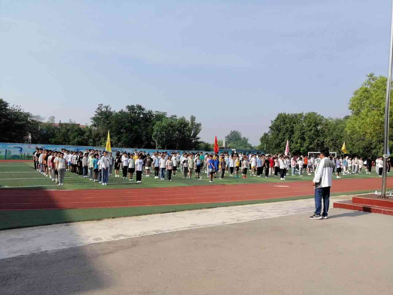 ~ 庄严的升旗仪式后,校长单正东在趣味运动会开幕式上致辞,希望全体师生能赛出风格、赛出水平,充分享受体育运动的快乐;期待赛场成为师生情感互通的场所,成为别样的和谐的教室;祝愿首届趣味运动会圆满成功!