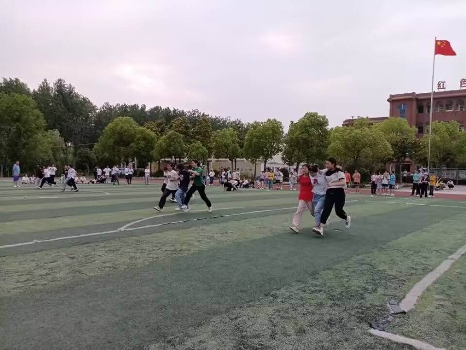 ~ 开幕式结束后各班同学以饱满的精神积级参加比赛。三人四足、过杆舞、100、200米短跑,800、1000米长跑,跳远、跳绳……精彩纷呈的画面不断在操场上演。比赛中,为了班集体的荣誉,各班运动员奋勇拼搏,努力争夺好成绩。每一场比赛,赛道两旁都挤满了人,拉拉队员的欢呼声、加油声此起彼伏不绝于耳。“加油、努力”、“团结协作、展现自我”等富有班级特色的的呐喊声和口号声,在学校的上空久久回荡,激励着同学们在赛场上奋勇拼搏。