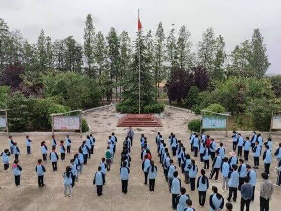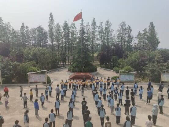 学校举行主题升旗仪式,通过国旗下的讲话活动开展劳动教育主题活动。