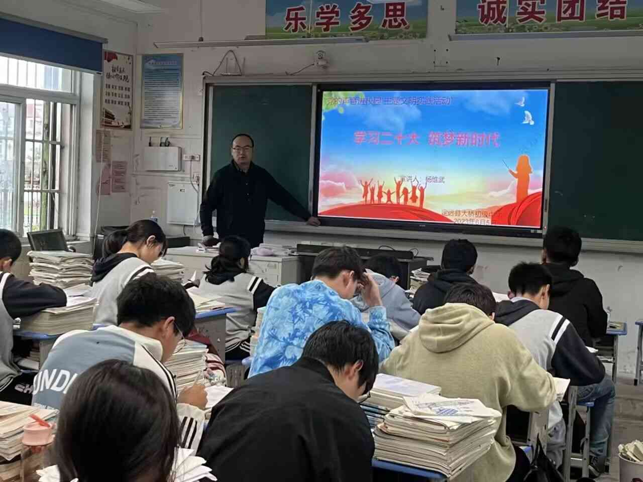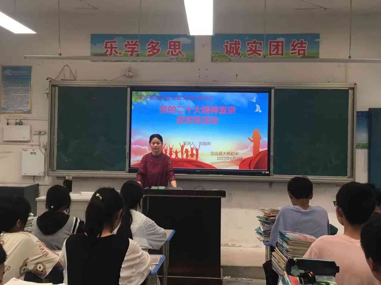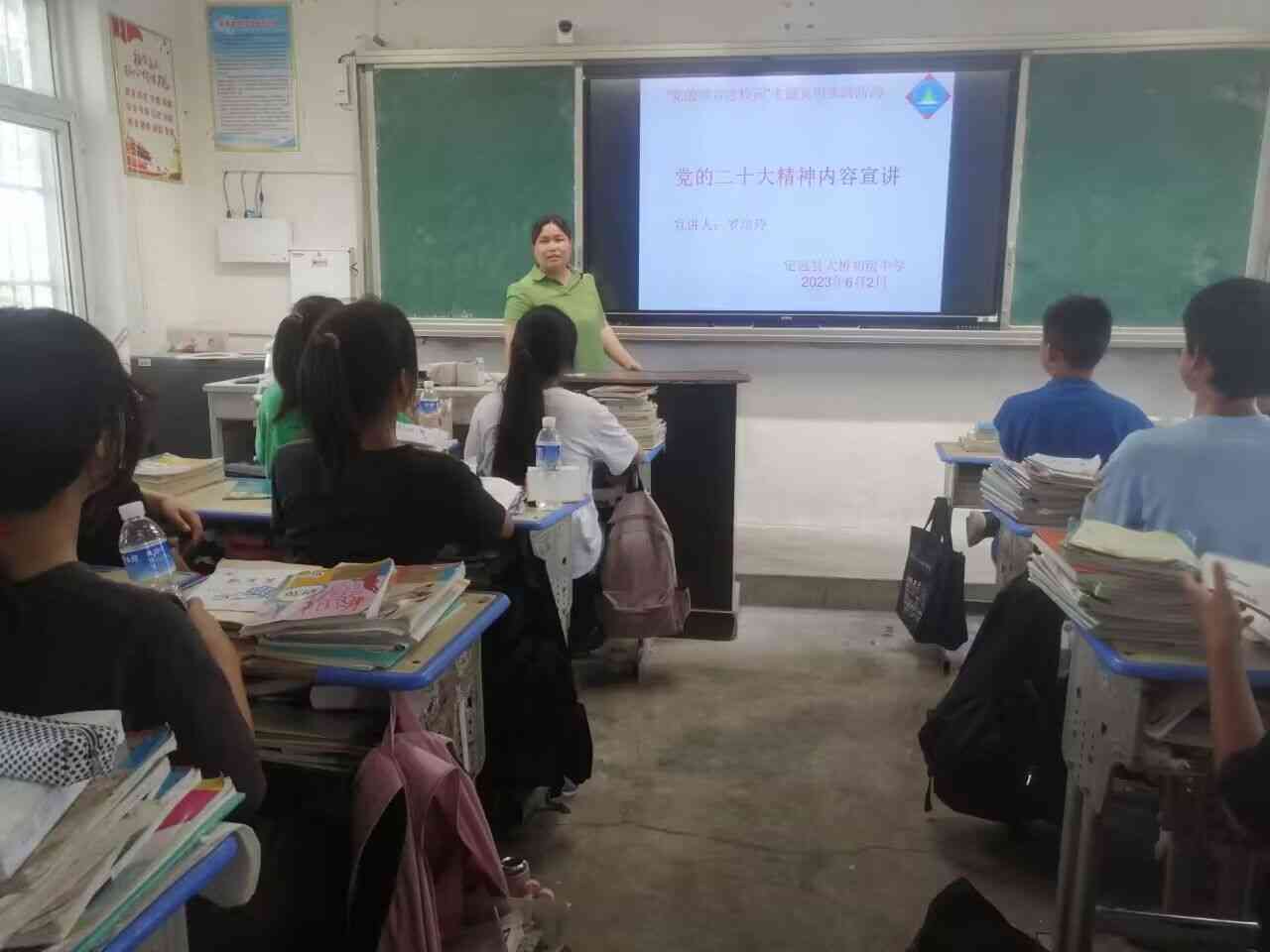 ~ 为深入学习宣传贯彻党的二十大精神,教育广大青少年坚定不移听党话、跟党走,立志做有理想、敢担当、能吃苦、肯奋斗的新时代好少年,近日,定远县大桥初中开展了党的二十大精神宣讲系列活动。