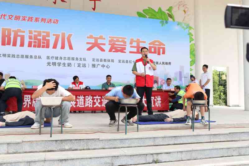 ~ 天气逐渐炎热,为增强广大师生、家长及群众的安全意识,遏制溺水事故的发生,保障学生安全,6月6日上午,定远县新时代文明实践志愿服务总队、医疗健身志愿服务支队、定远县教体局、定远县红十字会、界牌集镇人民政府及光明学生奶(定远)推广中心在定远县界牌集镇永宁大舞台联合组织开展“预防溺水 关爱生命”宣讲活动。永宁学校组织全体师生及学生家长积极参与此次活动。