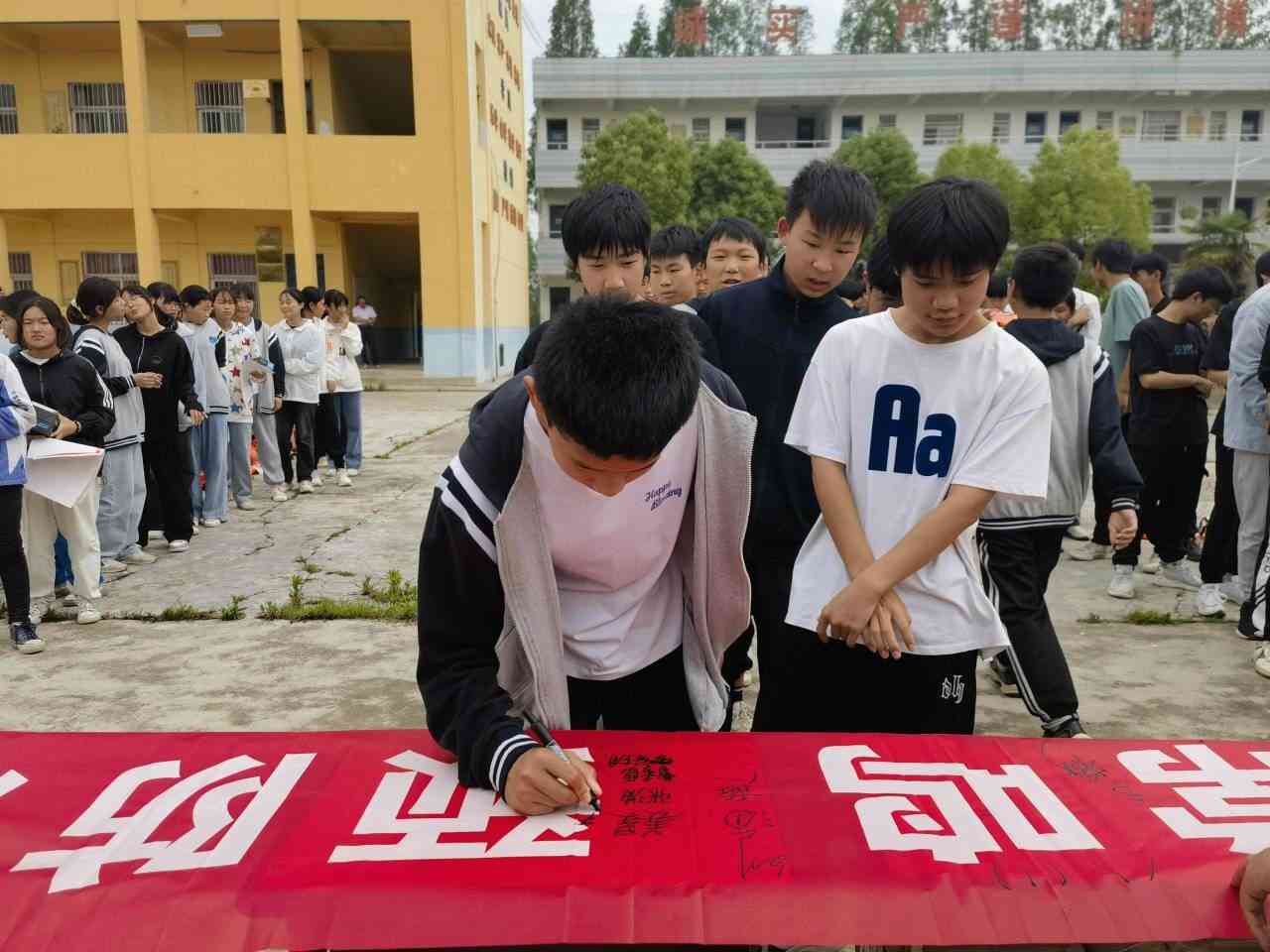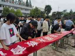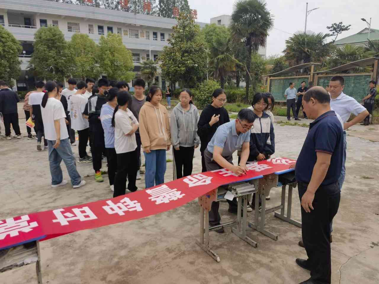 ~ “我们坚决不私自下水游泳,不擅自与他人结伴游泳……”全体学生在国旗下进行庄严宣誓。随后,在各班班主任的带领下,全体学生在写有”安全第一,珍爱生命,预防溺水,从我做起”的横幅上郑重地签下自己的名字。全体老师随即签名。签名后,条幅被挂在学校食堂,方便学生们每天看见,随时提醒他们。