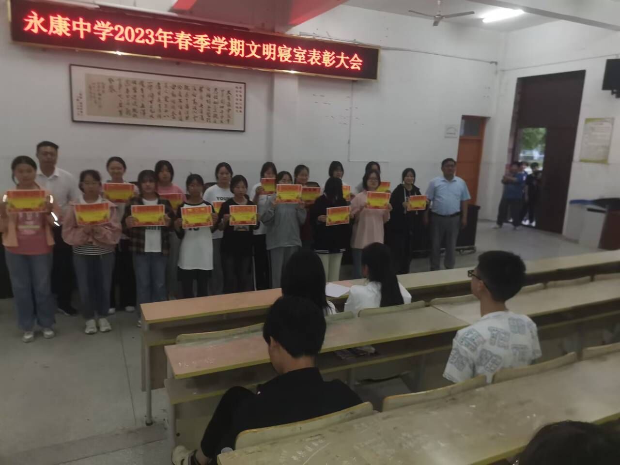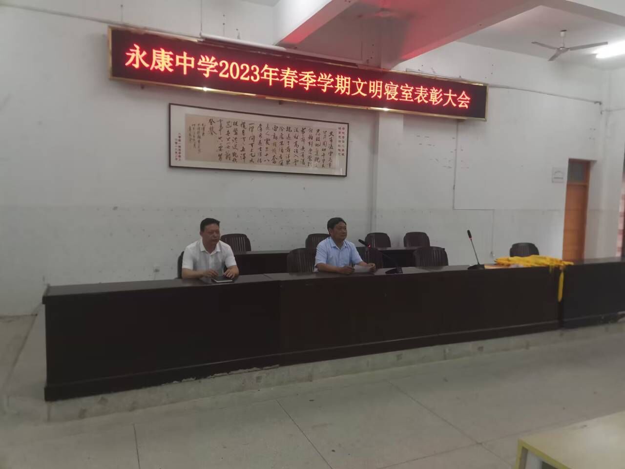 ~ 6月7日,定远县永康中学在校多功能大厅召开2023年春季学期文明宿舍表彰大会。此次会议由刘学永主任主持,校分管副校长张林参加会议并作总结发言。