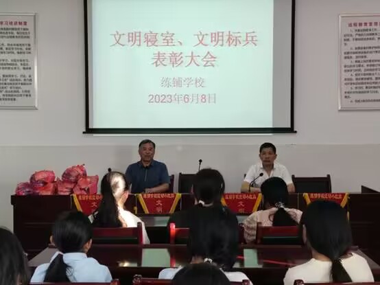 ~ 在学习生活中“没有完美的个人,只有完美的团队”,一个优秀的寝室离不开寝室成员的团结。只有我们彼此包容,理解,帮助,才能营造一个和谐友爱的寝室。创建健康文明的寝室,其必不可少的一点便是保持室内的清洁和物品的摆放整齐,当然更重要的是要有温暖的感觉和良好的学习氛围。经过管理员评分、统计,最终评选出练铺学校文明寝室和文明寝室标兵若干名,在综合楼大会议室对获得殊荣的寝室和个人进行了表彰。