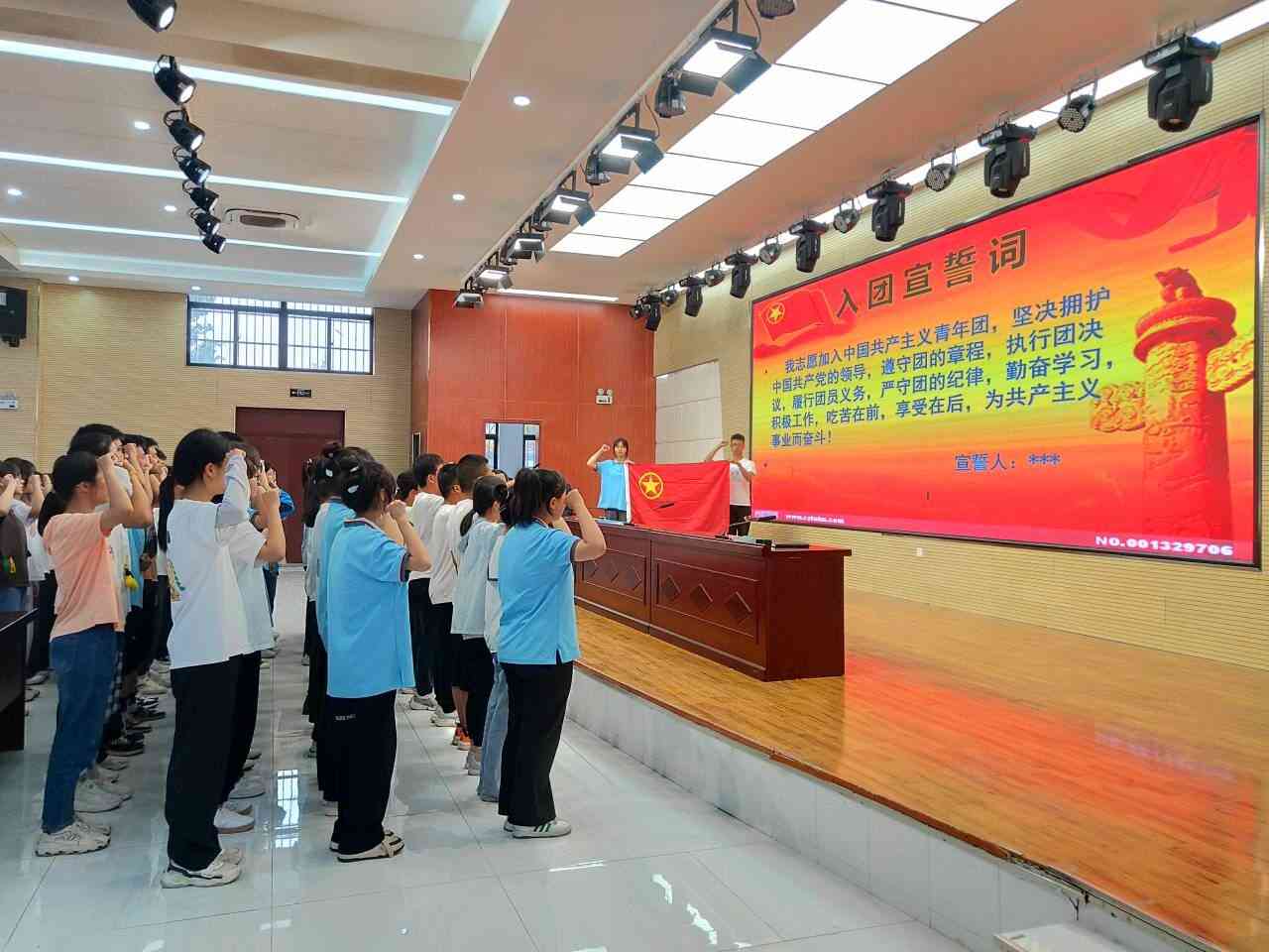 ~ 6月9日下午,定远县炉桥中学团委在学校报告厅举行了“青春心向党 建功新时代”入团宣誓仪式,学校领导及74名新老团员共同参加了活动。