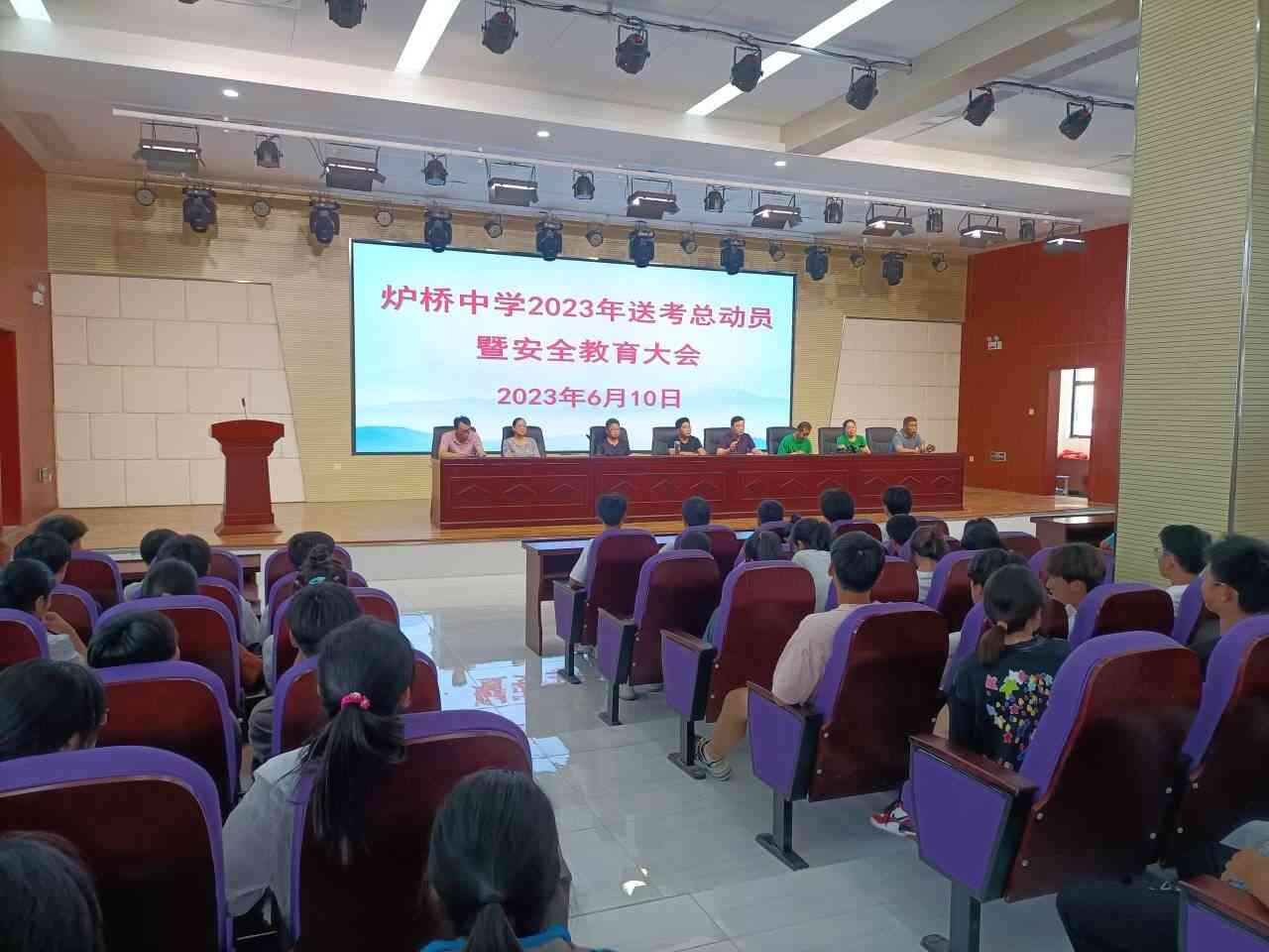 ~ 6月10日下午,定远县炉桥中学在学校报告厅召开中考动员暨安全教育大会。学校领导、初三班主任及九年级全体学生参与大会。