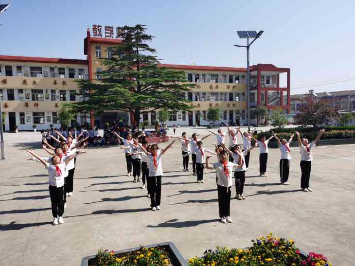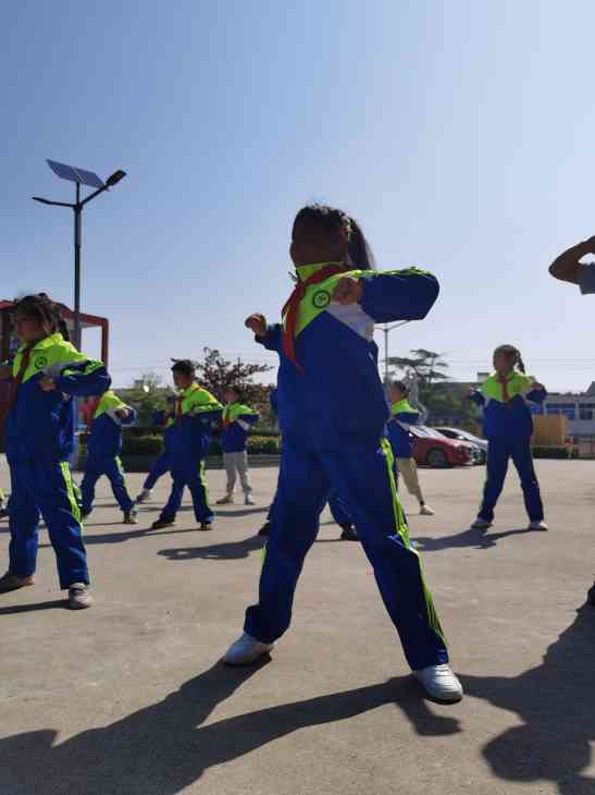 ~ 随着广播操音乐响起,孩子们紧跟节奏,时而挥臂,时而踢腿,时而跳跃,动作娴熟,张弛有度。从预备节到整理运动,一伸手、一抬腿,把广播体操明快流畅的风格特点展露出刚健之美,洋溢着青春的气息,飞扬着动人的神采。