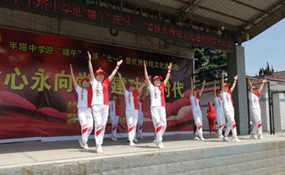 ~ 演出在有序进行。半塔镇《梦飞扬》文化志愿服务队又为全体师生献上了女声小合唱《红歌联唱》。《新四军来到半塔街》《反对开小差》《青年模范队》等四首歌是抗战时期流行于半塔根据地的“红歌”。经过“中国好人”、半塔镇文化站站长王祖道老师多年发掘整理,已经成为本地红色文化遗产之一。随后,有该校老师参加的表演队表演合唱了《没有共产党就没有新中国》,铿锵玫瑰,精神焕发,表达出人民对党的无限信赖之情。