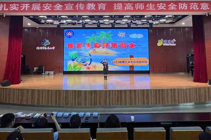 ~ 活动伊始,同学们在老师的指导下,结合消防员叔叔的日常工作,精心编排了消防安全宣传节目,宣传消防安全知识。接着,1054救援队为同学们带来了一场形式多样、内容丰富、通俗易懂的防溺水安全教育课。救援队队员通过深入浅出的讲解,结合实际案例,使同学们增强了防溺水安全意识,提升了自护自救能力。最后,滁州市公安局交巡警支队二大队为同学们带来了一堂“交通安全伴我行”主题教育课,通过课件、视频、图片等对同学们进行文明交通安全教育,用生动的案例向同学们强调交通安全的重要性。