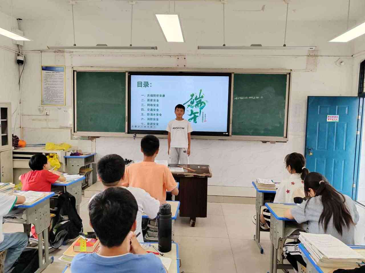 ~ 在班会上,班主任给大家讲述了端午节的由来,并且给大家讲了关于端午节的一些传说,例如屈原投江、曹娥救父、伍子胥的故事并且给大家讲了端午节赛龙舟、吃粽子习俗的由来。学生们积极发言讲述自己知道的端午节习俗,如吃粽子,赛龙舟,挂艾叶等。(供稿:王爱侠 审核:葛明珠 审签:张中保)