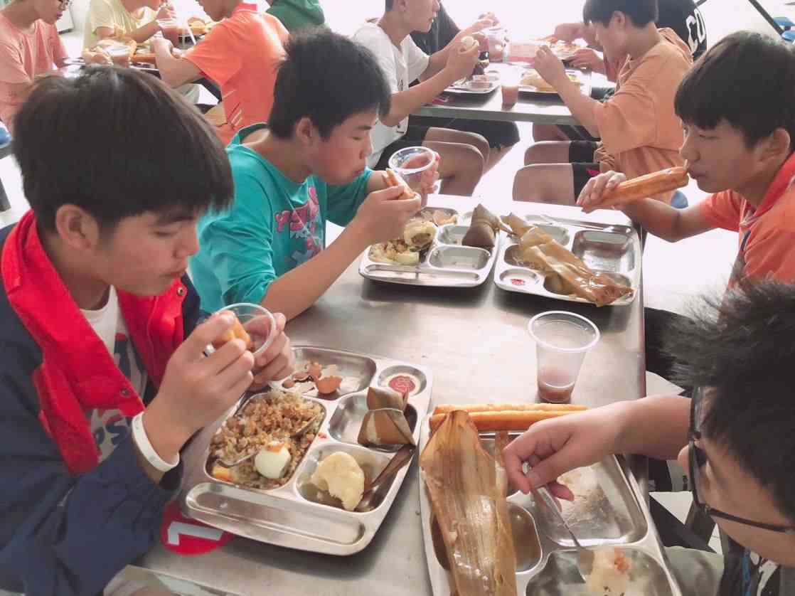 ~ 6月20日,拂晓学校各班召开主题班会,介绍端午节的来源和意义,学生们感受着传统文化的魅力。中午,该校组织教师和寄宿生在学校食堂进行了包粽子比赛活动,开始包粽子了,叠粽叶、装糯米、放馅料、捆棕绳,孩子们用线把老师对自己的爱系在心上。21日早晨,包好的粽子端上了饭桌,孩子们吃着粽子,喜笑颜开。