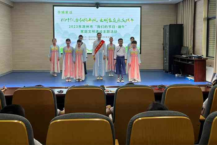 ~ 为大力弘扬中华民族优秀传统文化,进一步营造祥和文明的节日氛围,推动家庭文明建设蔚然成风,更好地落实“双减”政策。6月21日上午,由滁州市文明办、南谯区委宣传部主办,滁州市永乐小学协办的“粽叶飘香弘扬新风 文明家庭乐庆端午——2023年滁州市“我们的节日·端午”家庭文明建设主题活动”在永乐小学报告厅举行。滁州市、南谯区文明家庭代表、永乐小学师生以及家长代表齐聚一堂欢度端午佳节,传承中华文化。