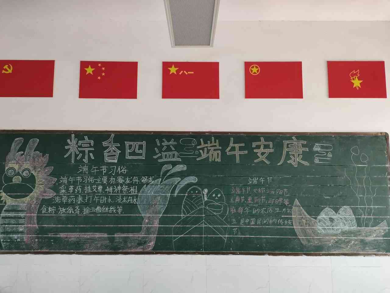 ~ 为了让同学们在这个节日里充分感受端午节丰富的文化内涵,拓展相关知识经验,各班级陆续召开了一次以“粽香四溢、端午安康”为主题的班队会,班主任带领同学们追溯端午节的由来,了解有关传说以及各地的风俗习惯,一起吟诵有关端午节的诗词。同时,各班级陆续出了一期端午节主题黑板报,班主任号召同学们动手制作一份端午节主题手抄报,让同学们进一步认同传统节日、喜爱传统节日,进一步增强爱国爱乡情感。此外,端午节期间,学校倡导每位同学在家开展一次“我与家人一同包粽子”节日实践活动。亲子互动不仅能让同学们感受到节日的浓浓氛围,还能增进亲子感情。