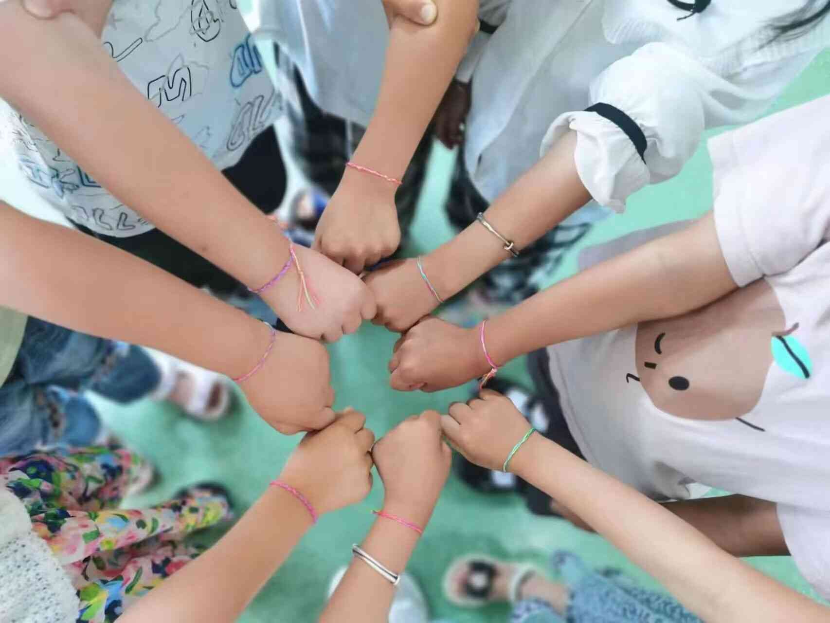系五彩绳也是端午节的一项传统习俗,它有祈福纳吉、驱邪避瘟的美好寓意。丝丝彩线环绕手腕,寄托着老师们美好祝福。