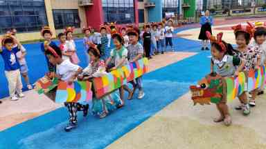 大班的孩子们开展了旱地龙舟大赛,当比赛信号响起,呐喊声、加油声此起彼伏,孩子们兴高采烈地进行着比赛。龙舟大赛不仅让孩子们体验到了别样的民俗文化,还在游戏过程中感受到团队合作的重要性。