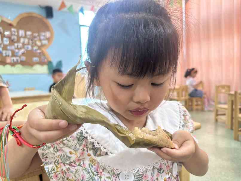 为了让幼儿更热烈地感受端午节的氛围,幼儿园也特意为孩子们准备了香喷喷的粽子,小手轻轻的剥开粽叶,糯米、红豆的香味扑鼻而来,孩子们忍不住细细品尝,软糯的粽子格外香甜。