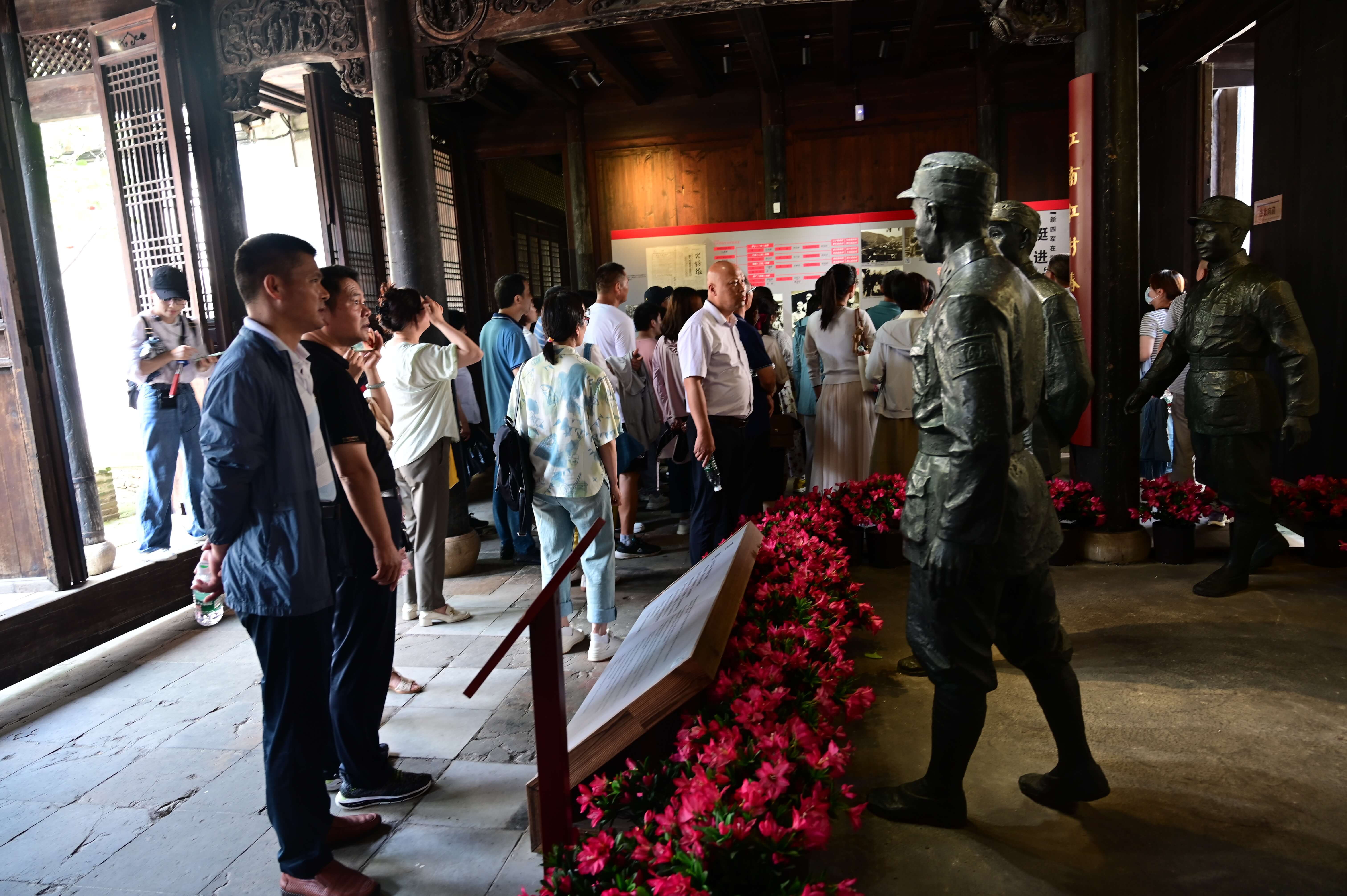 ~ 在湖州市长兴县新四军纪念馆内,在讲解员的解说下,广大党员深入了解了粟裕等革命先辈带领人民群众进行革命斗争的光辉历史。
