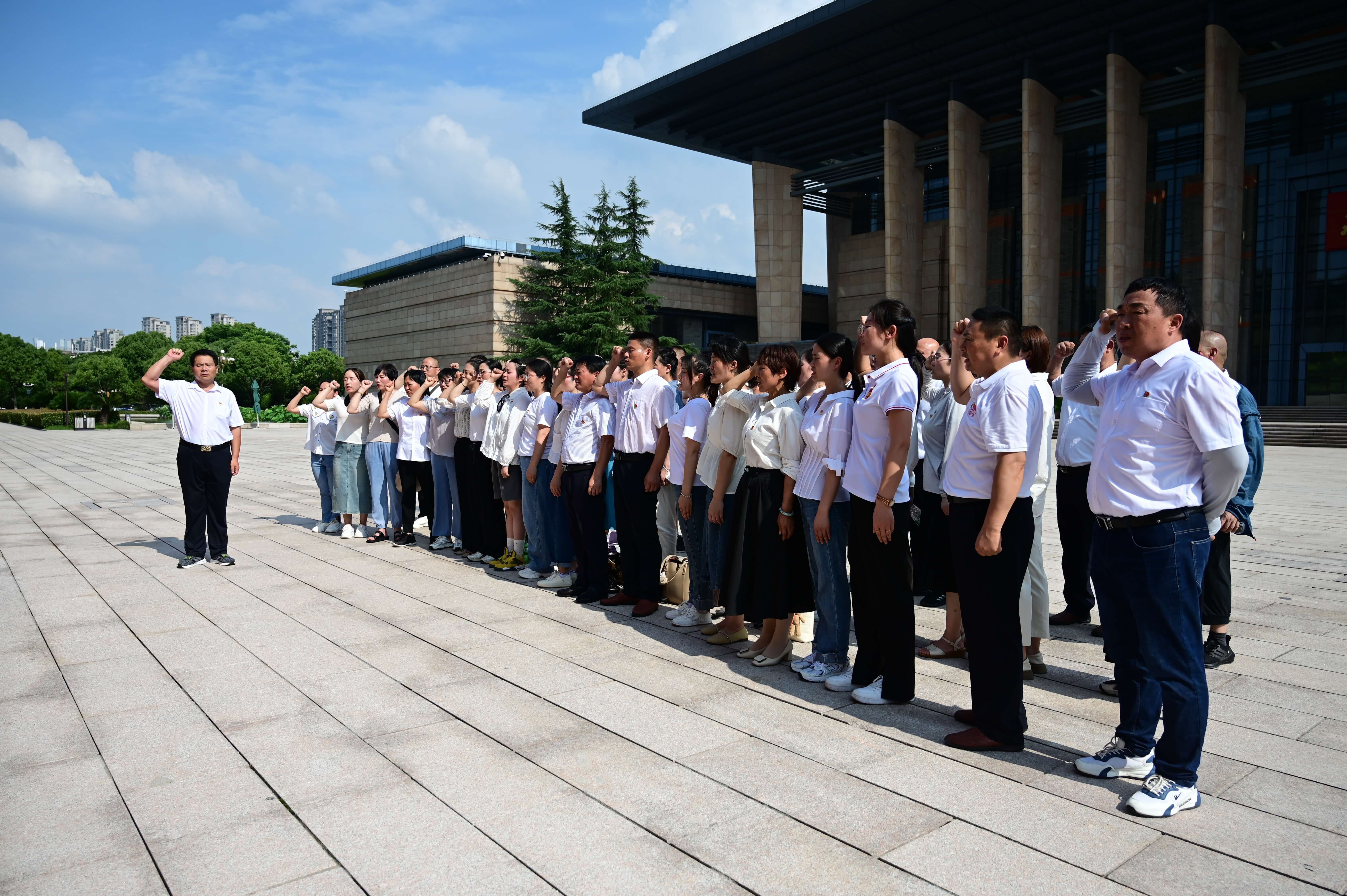 ~ 南湖革命纪念馆内,广大党员驻足于一幅幅珍贵的历史资料前,瞻仰了所成列的革命先辈画像,革命历史文物,聆听讲解员关于党的奠基人生平事迹介绍,重温百年大党的奋斗历程,追寻峥嵘岁月的历史印记,了解伟大的党一路走来的苦难辉煌。在参观学习中进一步坚定理想信念,铭记党的宗旨。在党总支副书记姚明峰的带领下,广大党员在革命纪念馆前进行重温“入党誓词”,参加学习的党员同志举起右拳庄严宣誓。