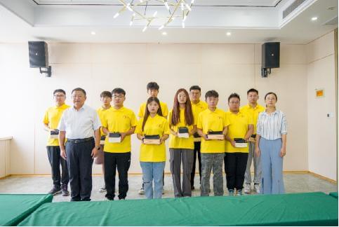 图为市场监管部门负责人与机电学院“三下乡”实践团队合照