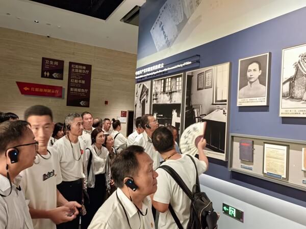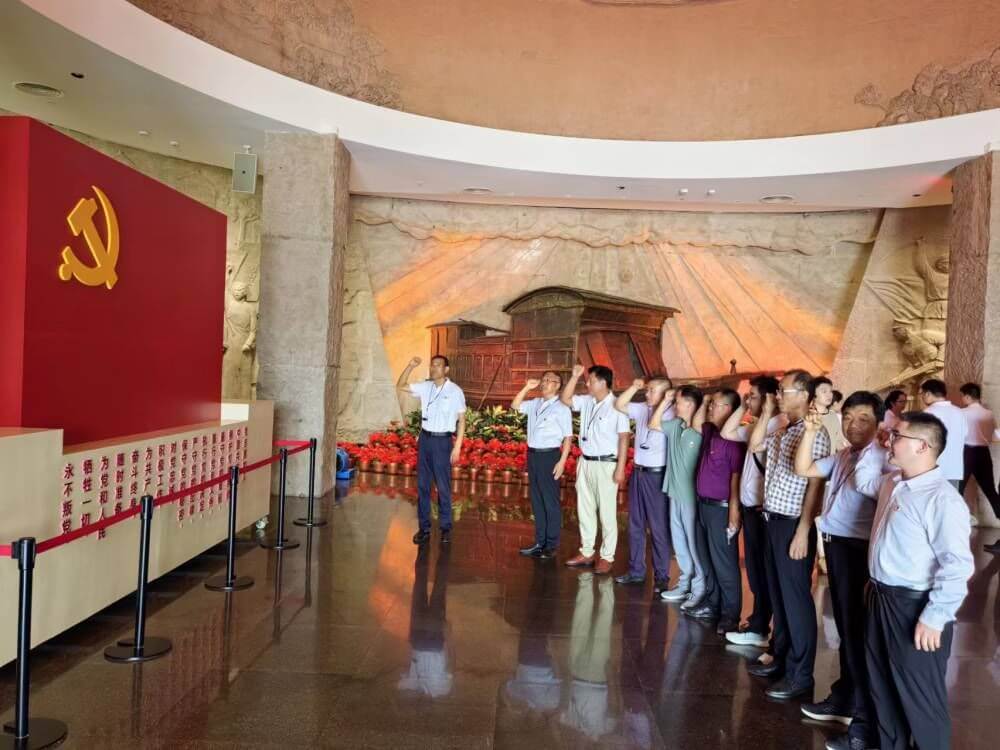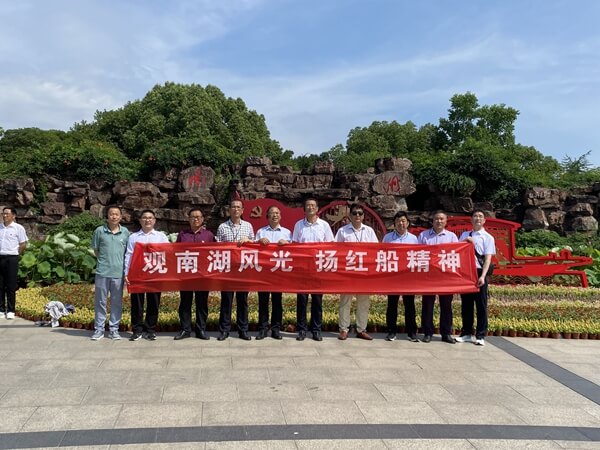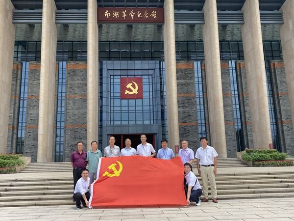 ~ 在嘉兴南湖,同志们乘渡船登上湖心岛。烟雨楼前的湖面上停泊着一艘画舫,这里是中共一大会址,是中国共产党的诞生地,共产党人就是从这里扬帆起航,乘风破浪,党员们怀着崇敬的心情瞻仰了红船,切身感悟了红船精神的深刻内涵。在南湖革命纪念馆内,同志们重温入党誓词。在“救亡图存”“开天辟地”“光辉历程”“走向复兴”等展区内,通过一幅幅图片、一张张图标、一件件实物、一段段视频,同志们深入了解了中国共产党不断发展壮大的光辉历程,深刻感悟了一代又一代共产党人历久弥坚的初心使命。