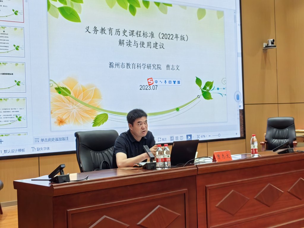 ~ 13-14日,初中数学、初中历史、初中地理3科培训在该县第一初级中学双塘中学校区成功举行。滁州市教育科学研究院数学学科教研员张颖老师的讲座《基于新课标的初中数学教学实施》,历史学科教研员曹志文老师的《初中历史课标解读及使用建议》。他们从课程性质、课程理念、课程目标、学业质量等方面详细解读了新课程标准的修订,大单元教学的实施,项目化学习的尝试以及中考试题的变化。
