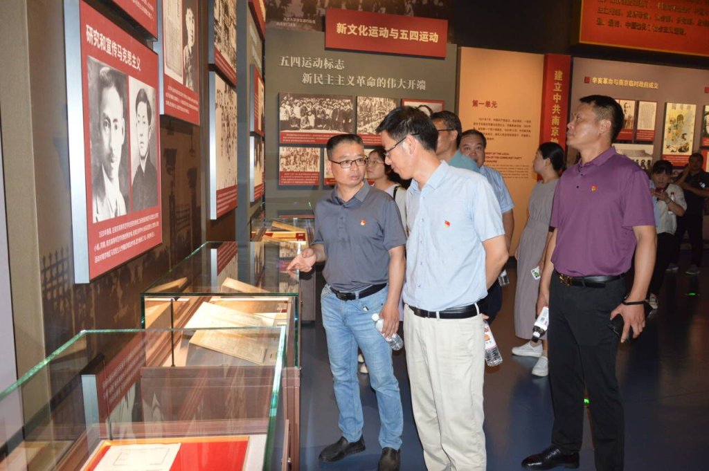 ~ 各位党员现场参观了渡江胜利纪念馆和中共代表团办事处旧址、周恩来图书馆,感受前辈们无私无我,为实现民族独立、解放而自强不息的革命精神和奋斗精神。参观学习过程中,党员们被一则则故事、一句句箴言所深深吸引,不时驻足沉思、拍照记录或相互交流。