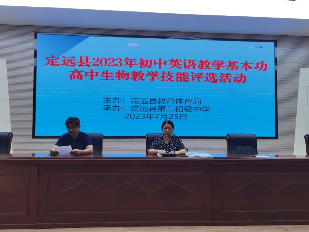 ~ 7月25日,定远县2023年初中英语基本功、高中生物教学技能比赛在定远县第二初级中学举行,来自全县初高中近40名教师参加了此次评选活动,县教研室教研员董云艳出席本次活动并讲话。